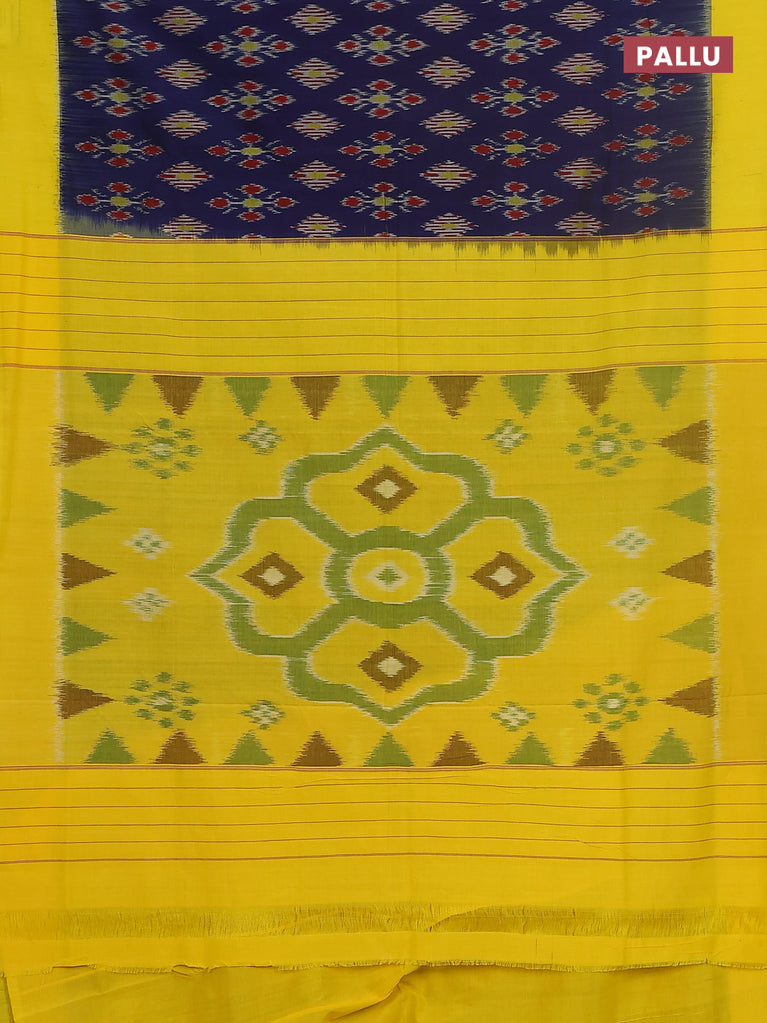 Ikat cotton saree blue and yellow with allover ikat butta weaves and simple border