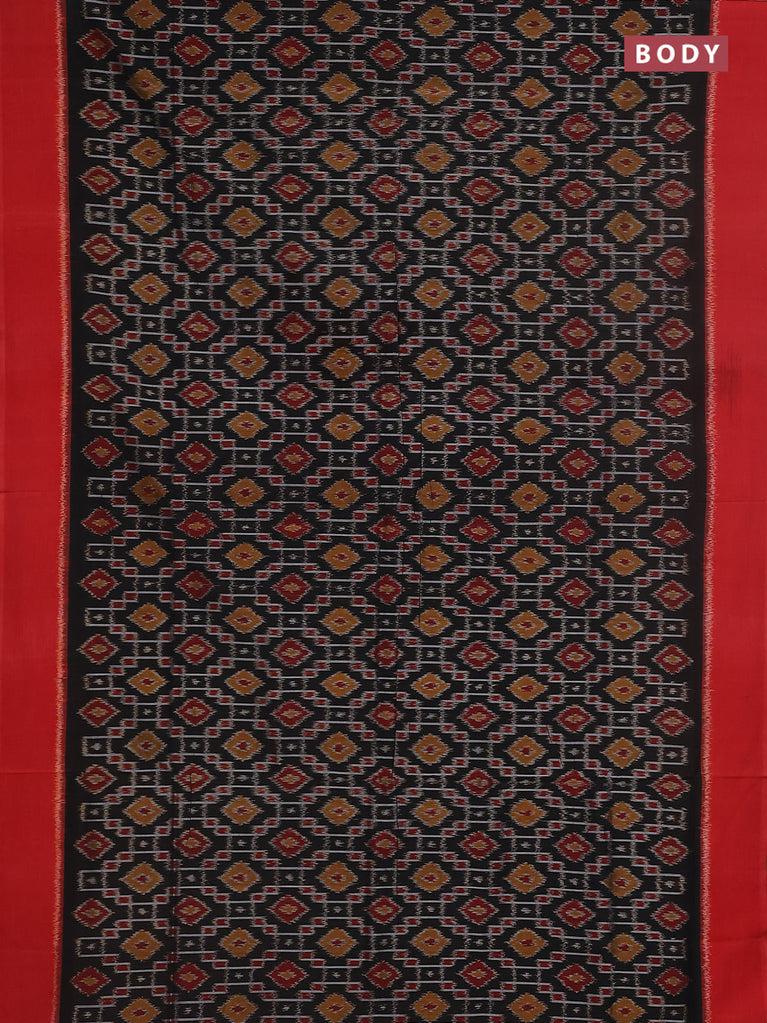 Ikat cotton saree black and red with allover ikat weaves and simple border