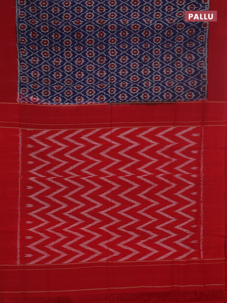 Ikat cotton saree blue and red with allover ikat weaves and simple border