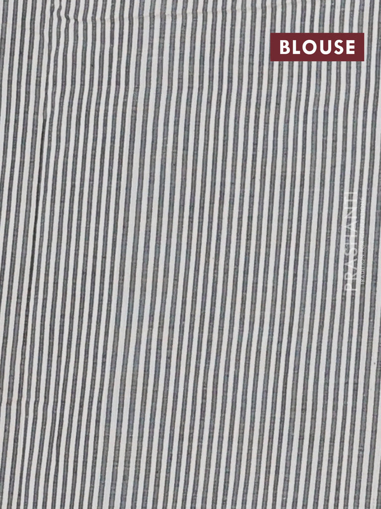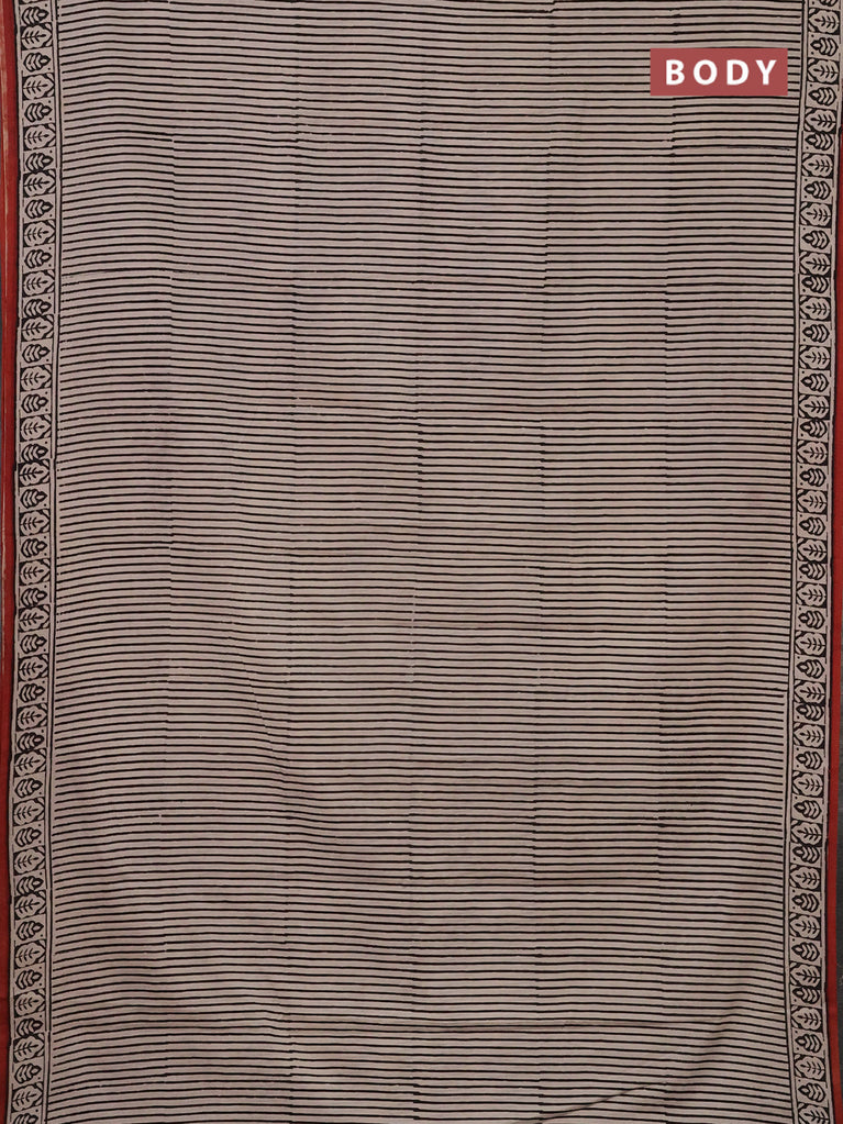 Jaipur cotton saree beige and black with allover stripe pattern and printed border