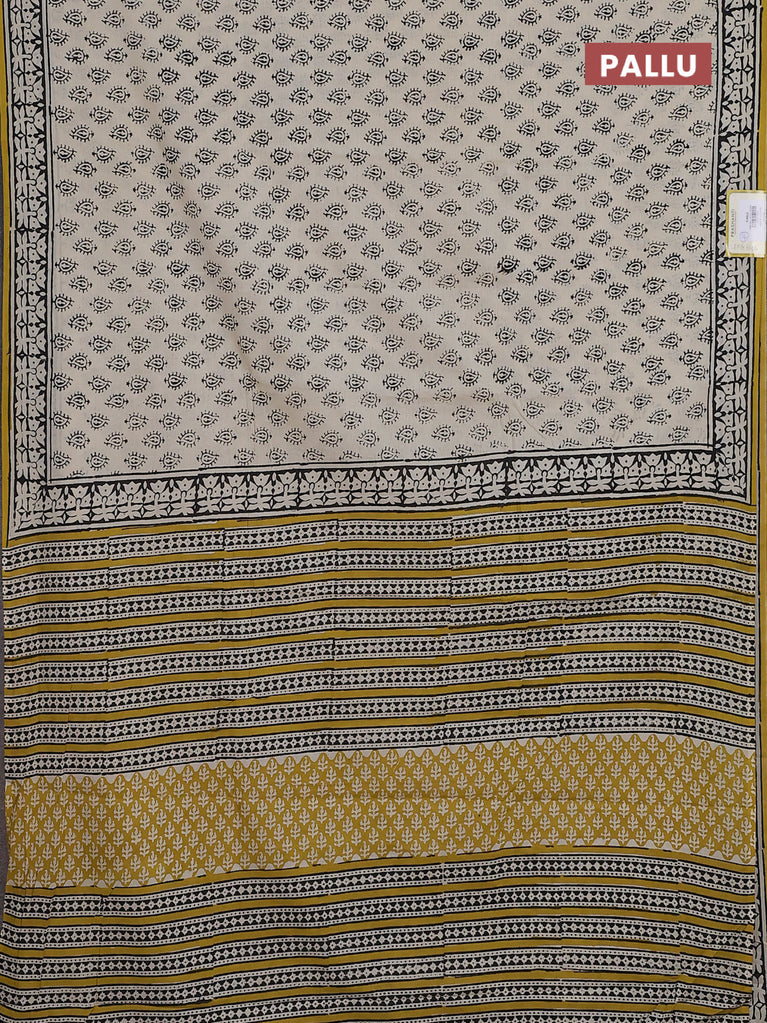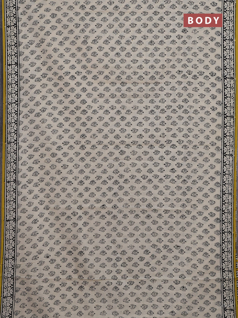 Jaipur cotton saree beige and black with allover butta prints and printed border