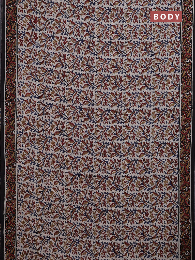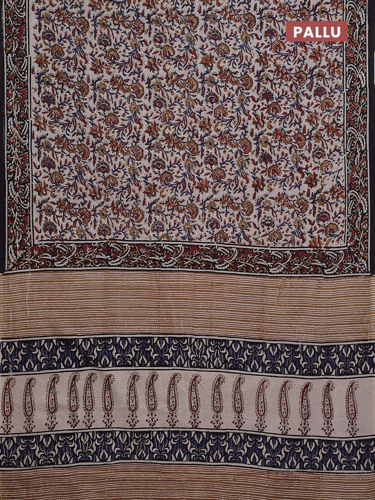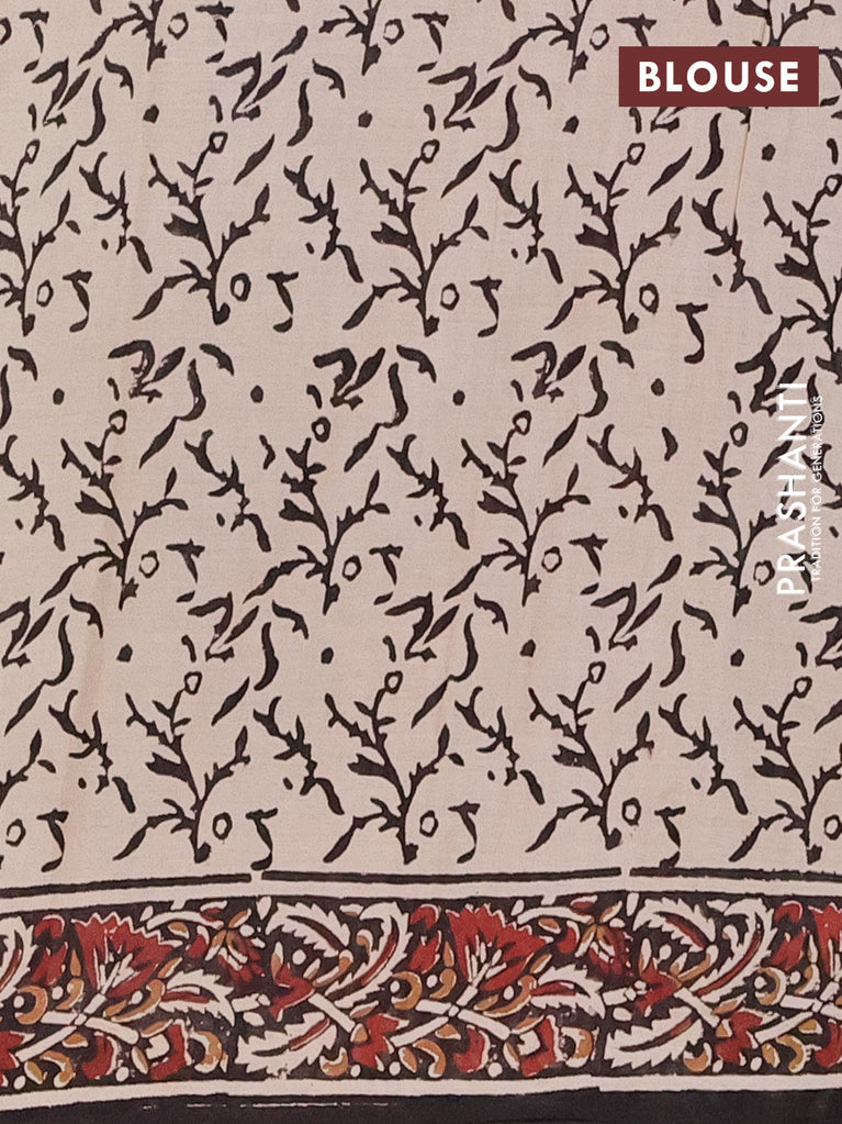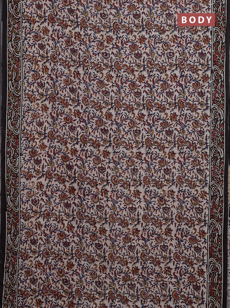 Jaipur cotton saree beige and black with allover kalamkari prints and printed border