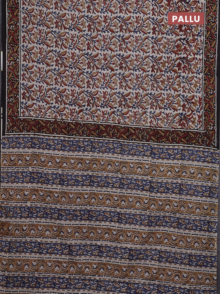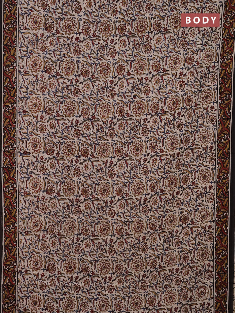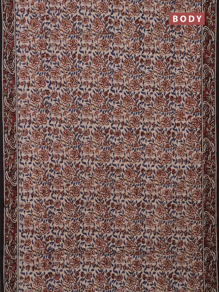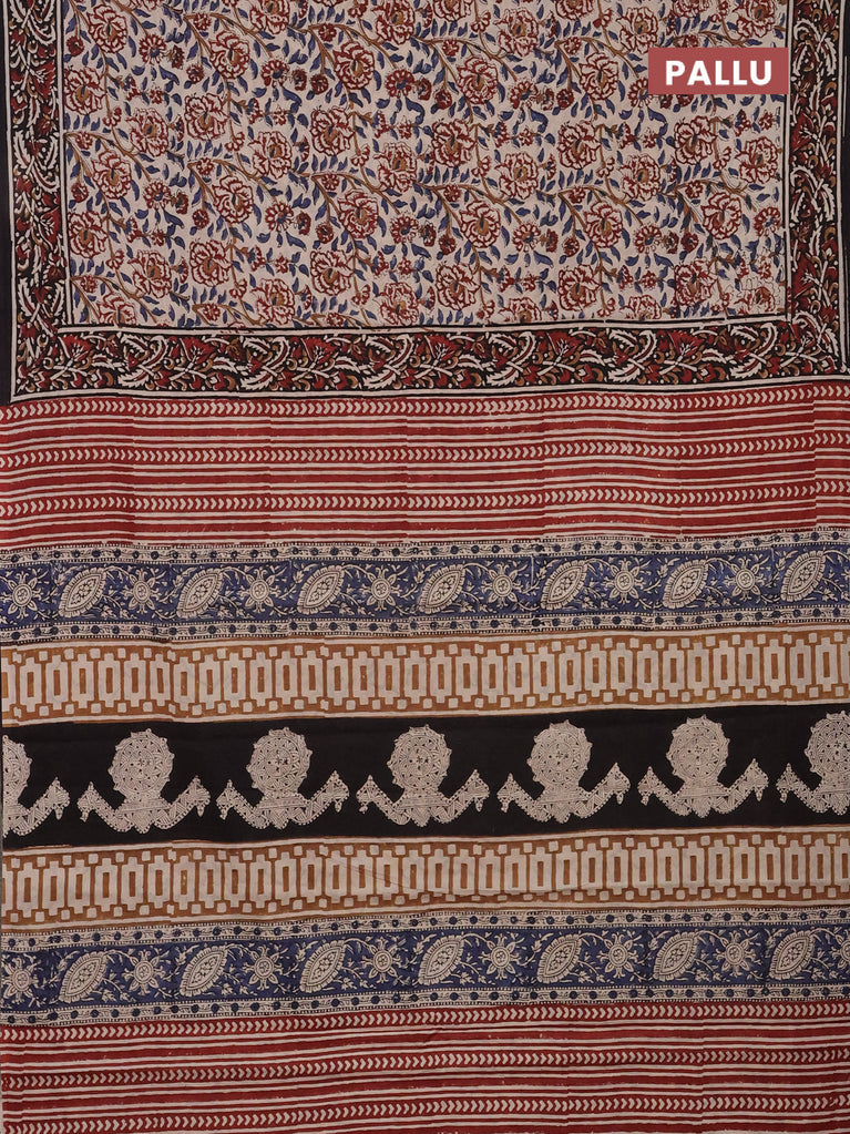 Jaipur cotton saree beige and black with allover kalamkari prints and printed border