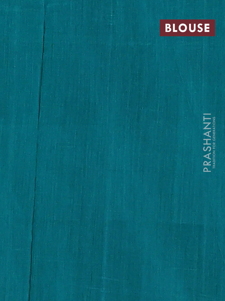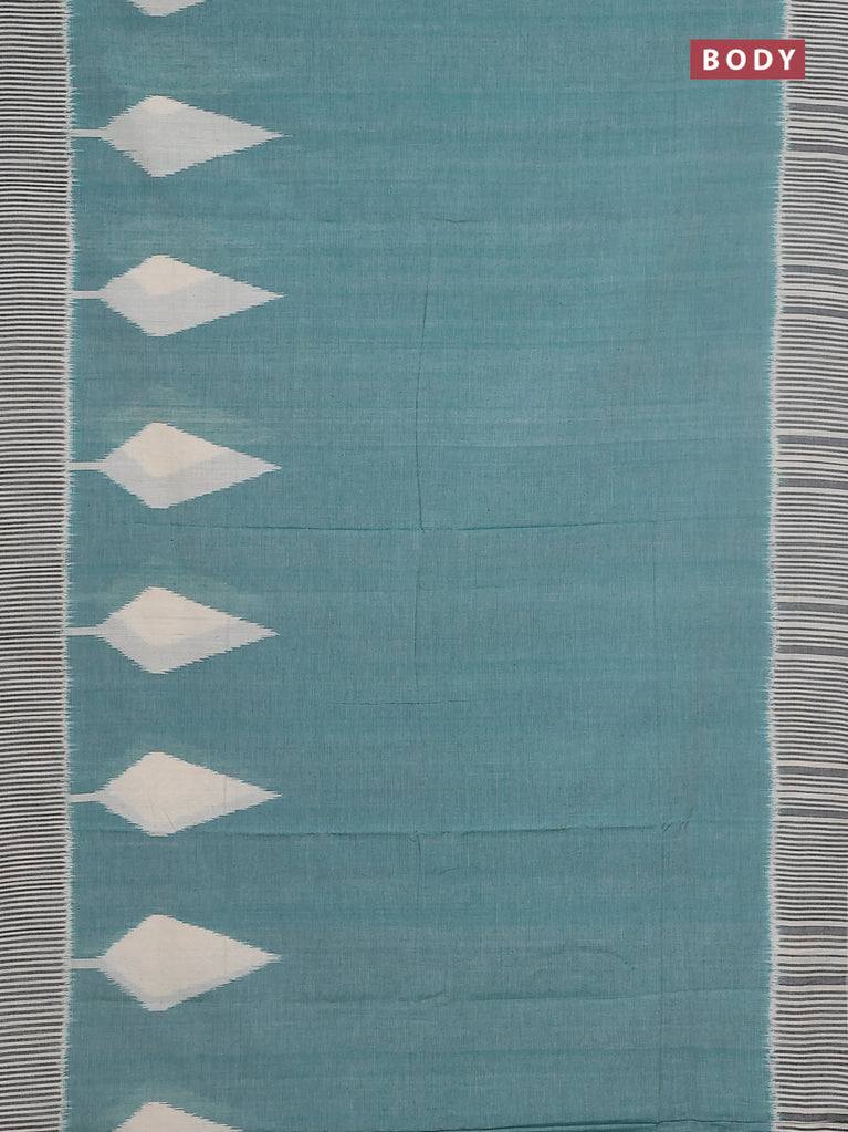 Ikat cotton saree teal green and cream with plain body and simple border