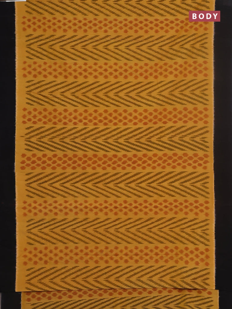 Ikat cotton saree yellow and black with allover ikat weaves and simple border