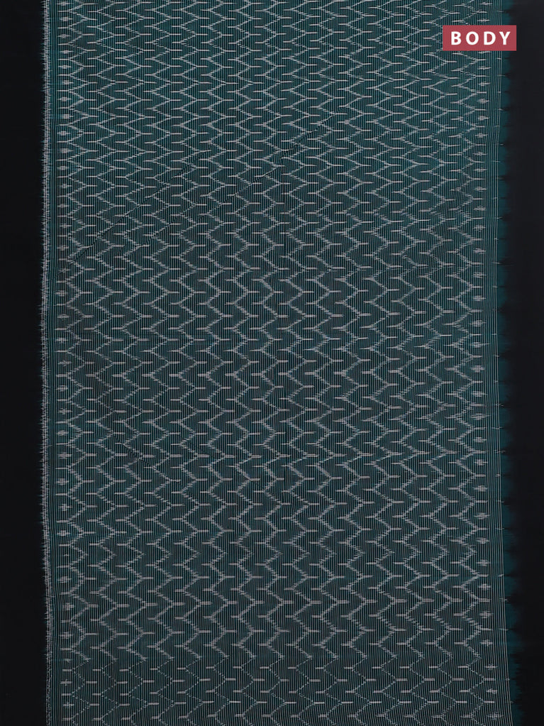 Ikat cotton saree teal green and black with allover ikat weaves and simple border
