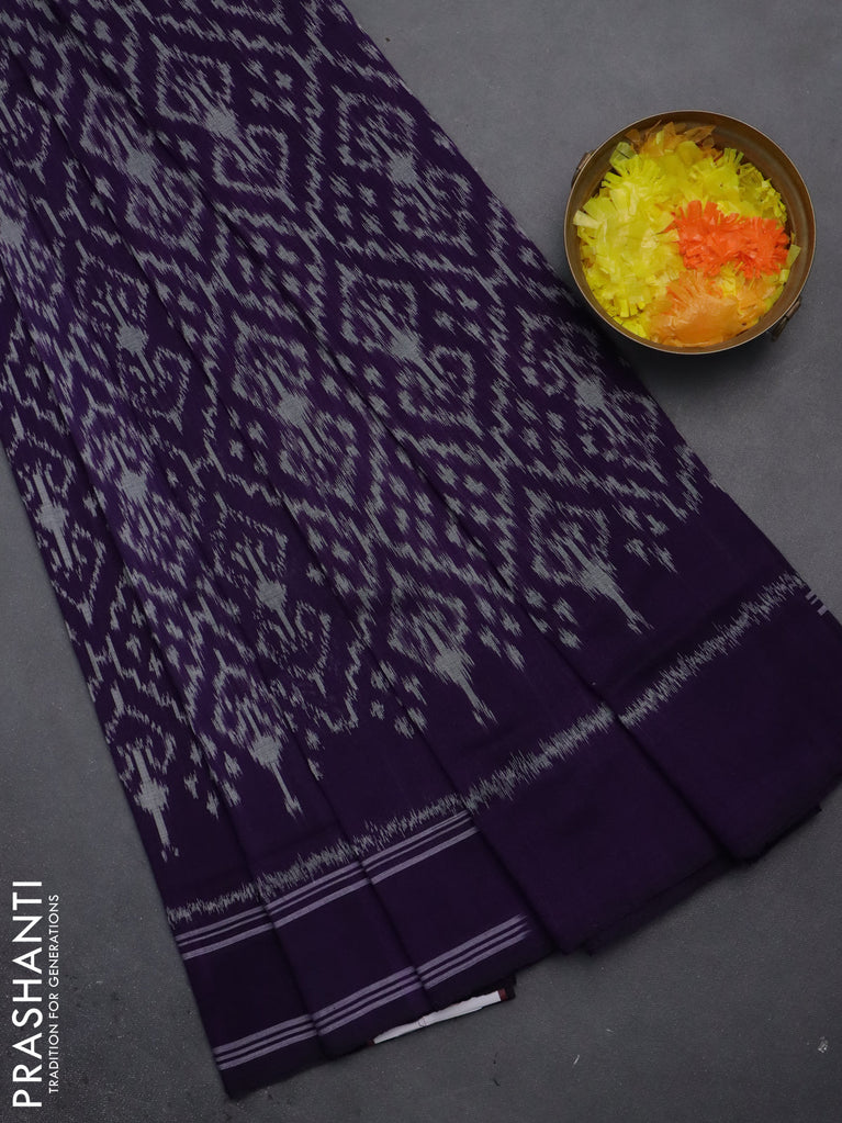 Ikat cotton saree violet with allover ikat weaves and simple border