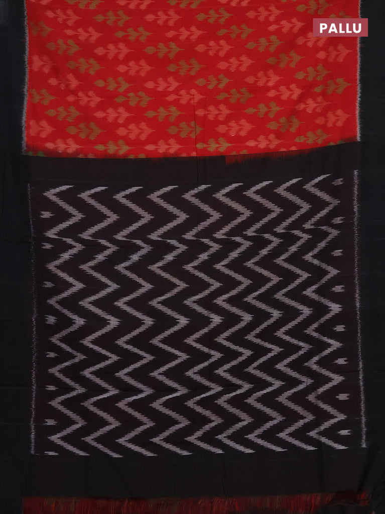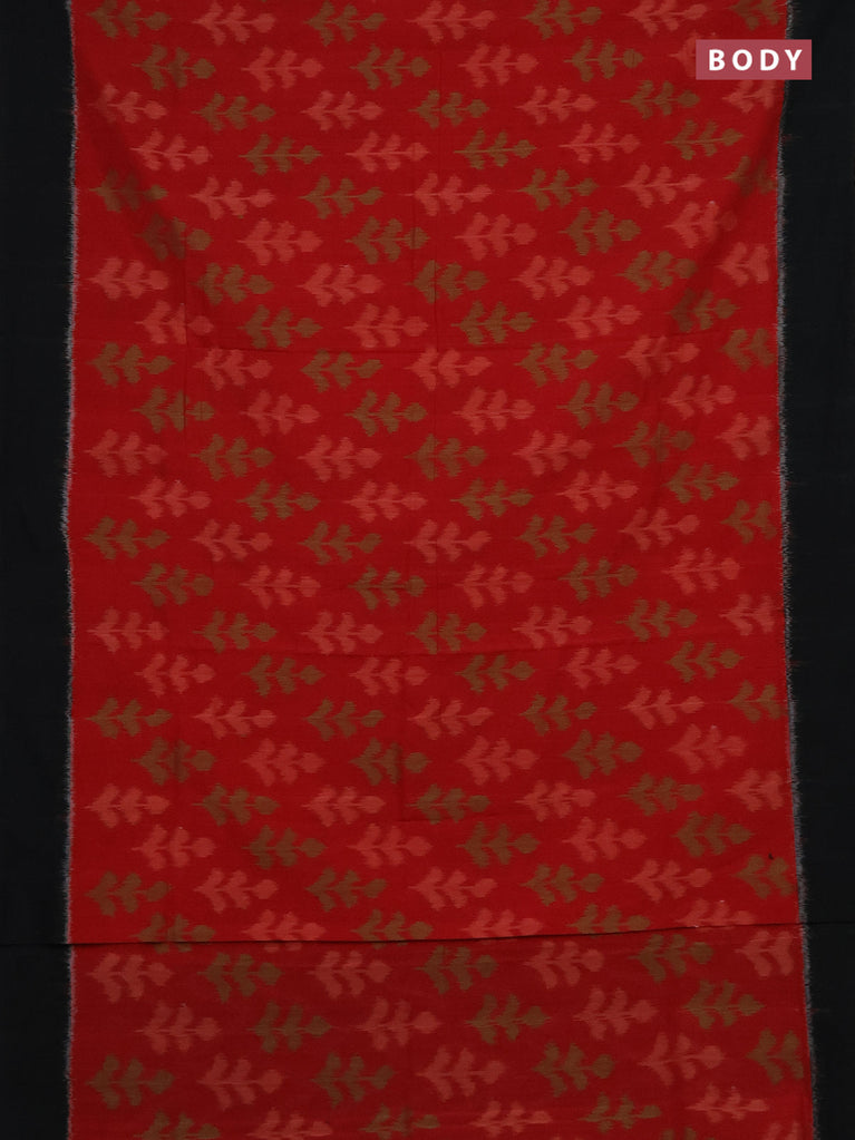 Ikat cotton saree red and black with allover ikat butta weaves and simple border