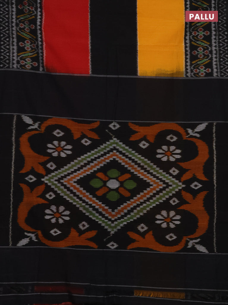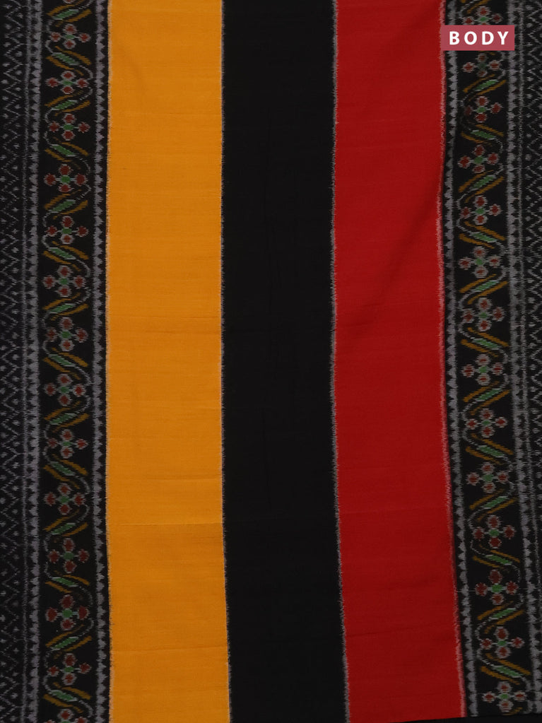 Ikat cotton saree yellow black and red with plain body and long ikat style border