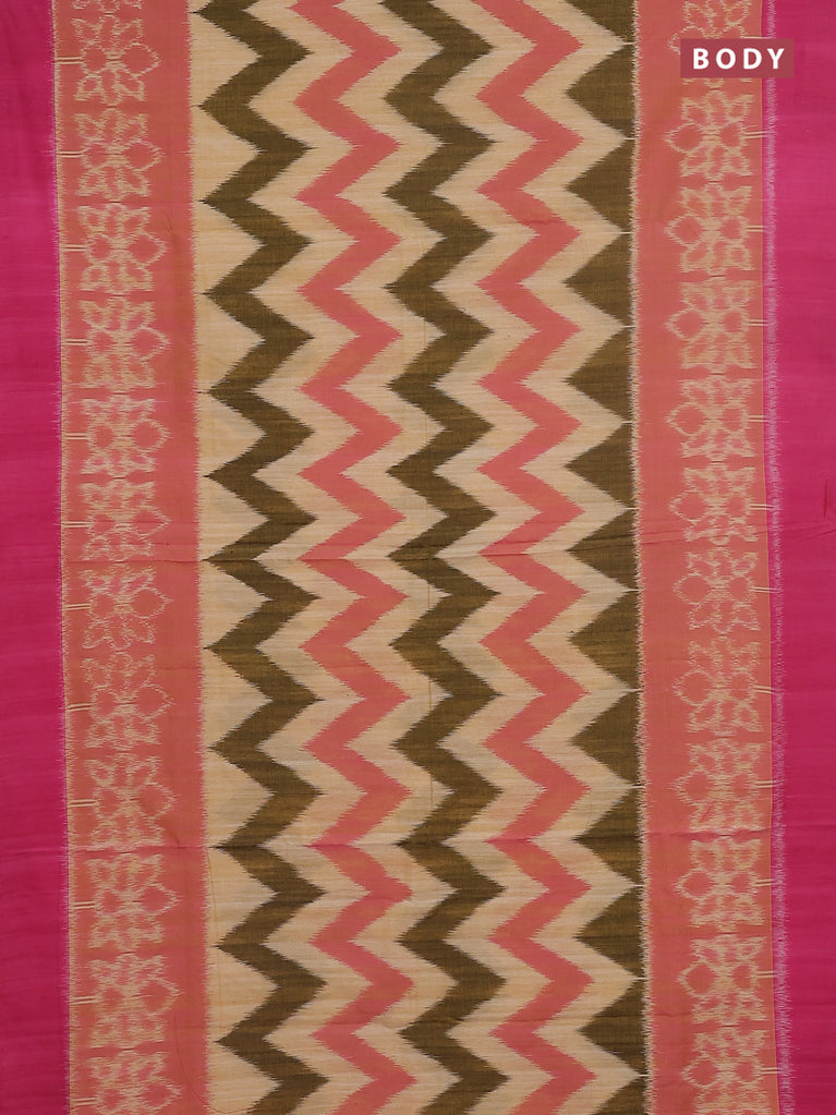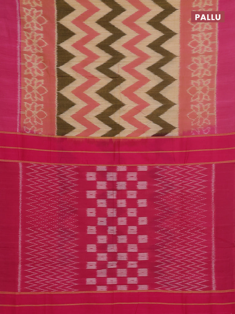 Ikat cotton saree sandal and pink with allover zig zag weaves and simple border