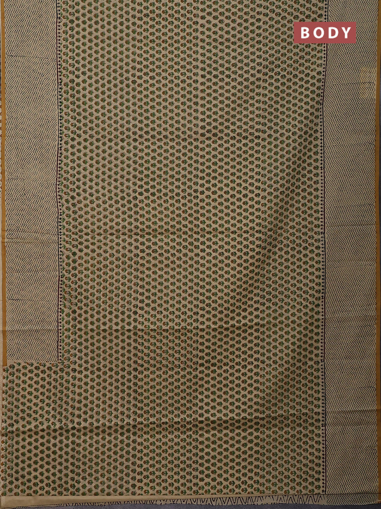 Jaipur cotton saree beige and mustard yellow with allover butta prints and printed border