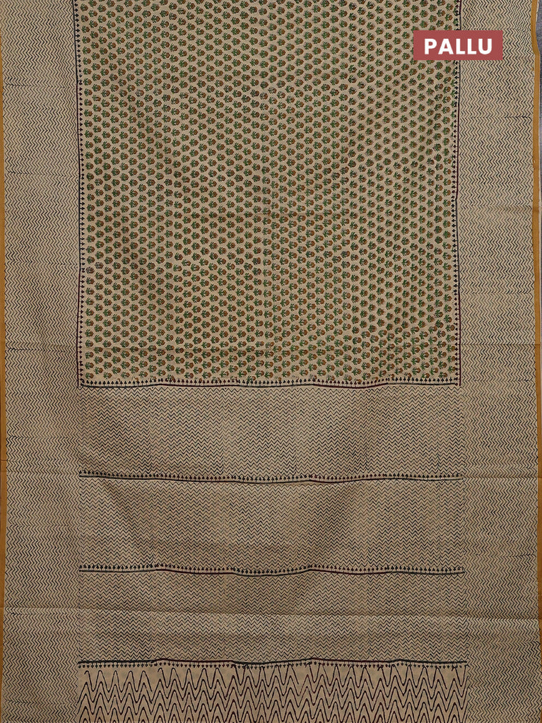 Jaipur cotton saree beige and marron with allover kalamkari prints and printed border
