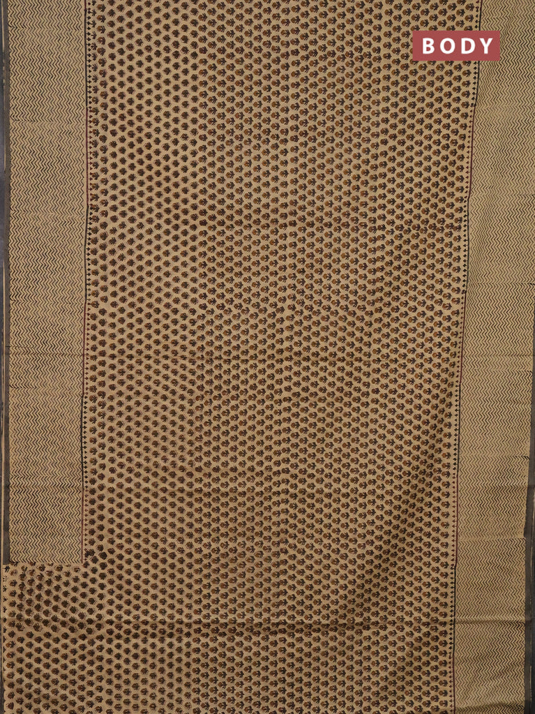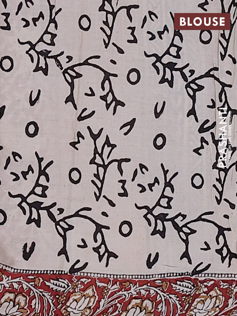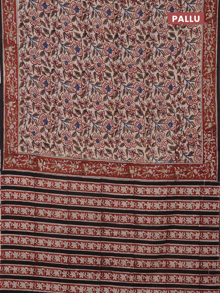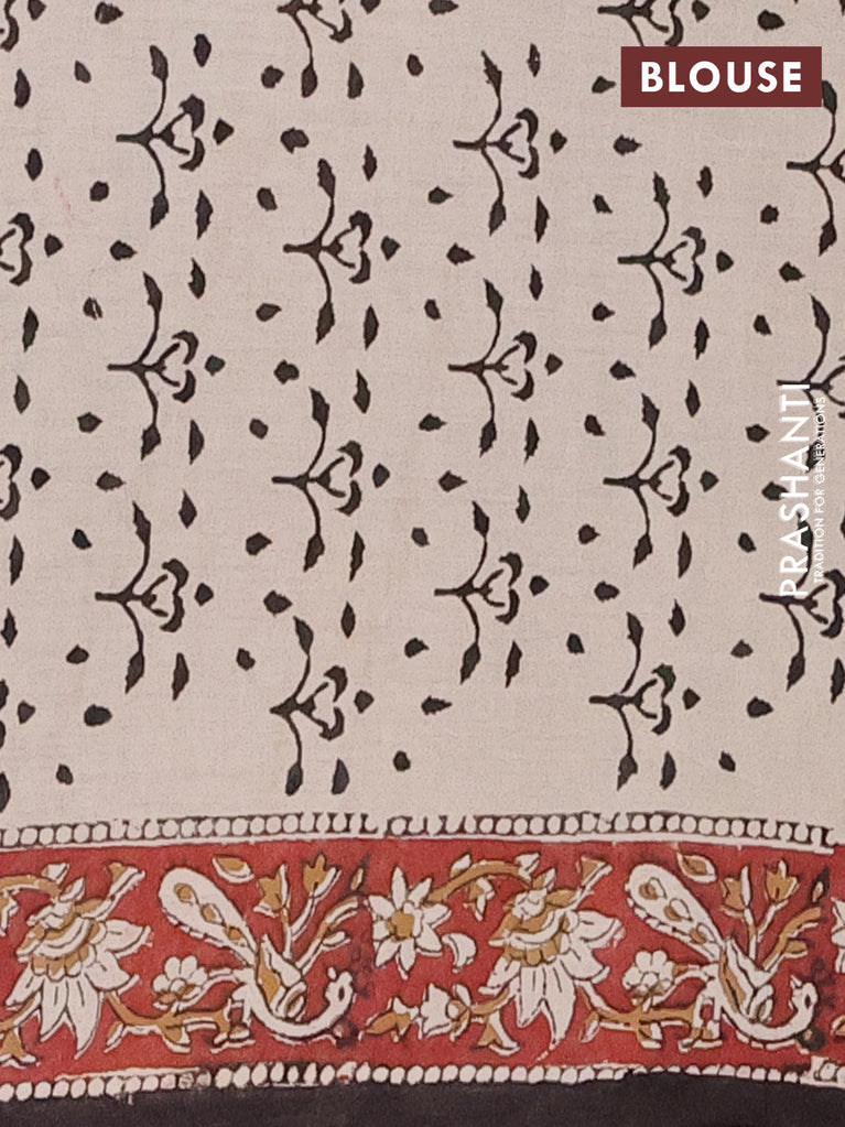 Jaipur cotton saree beige and maroon black with allover kalamkari prints and printed border