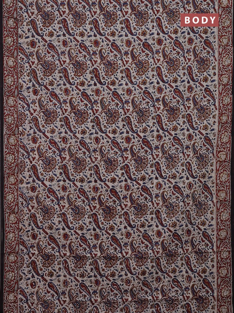 Jaipur cotton saree beige and maroon with allover kalamkari prints and printed border