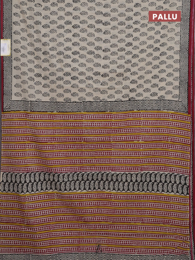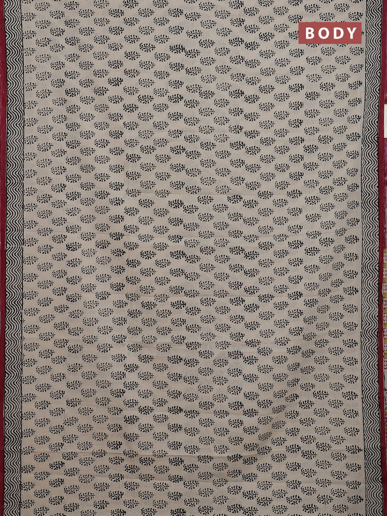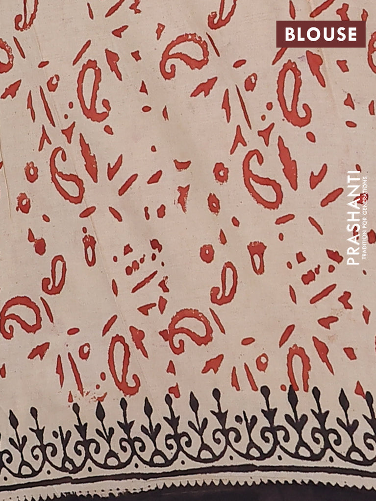 Jaipur cotton saree beige black and marron with allover paisley prints and printed border