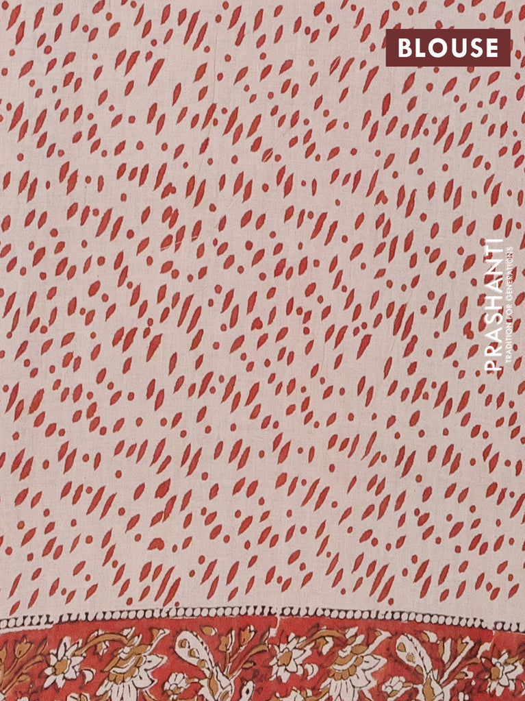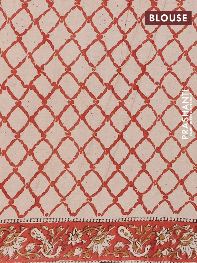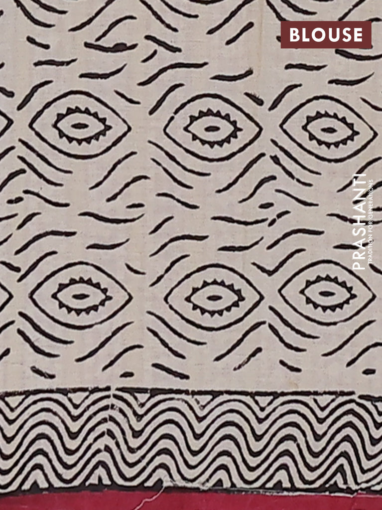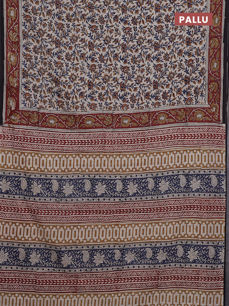 Jaipur cotton saree beige blue and maroon with allover kalamkari prints and printed border