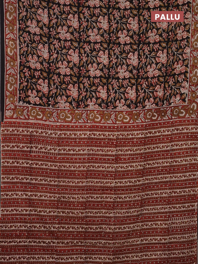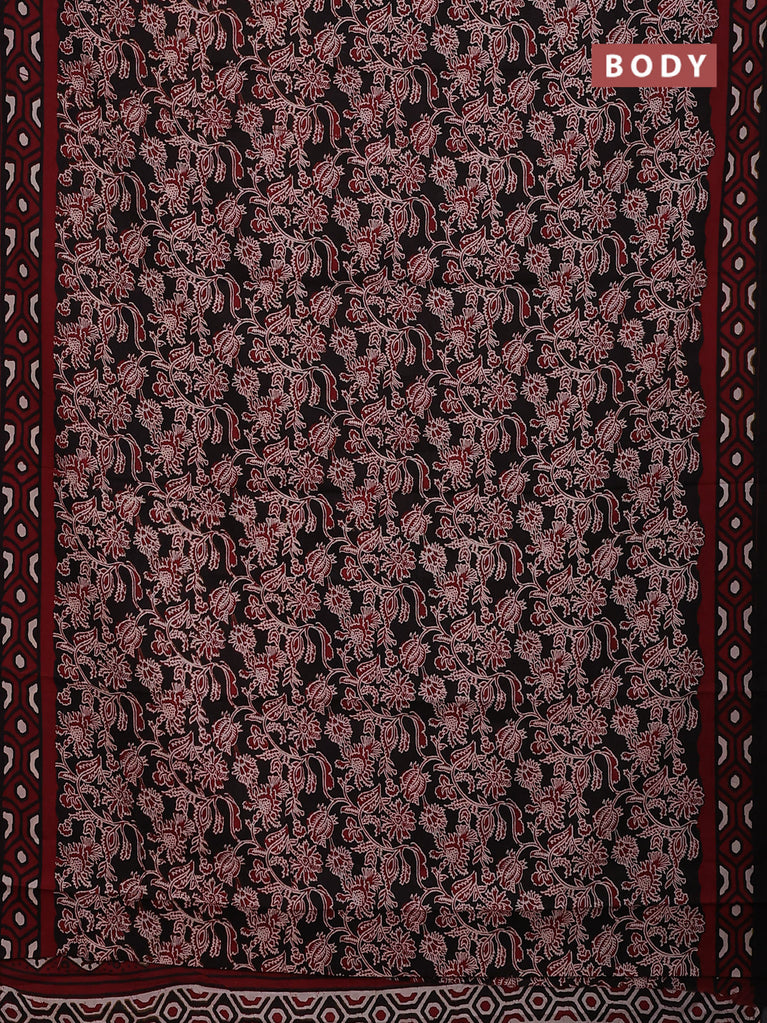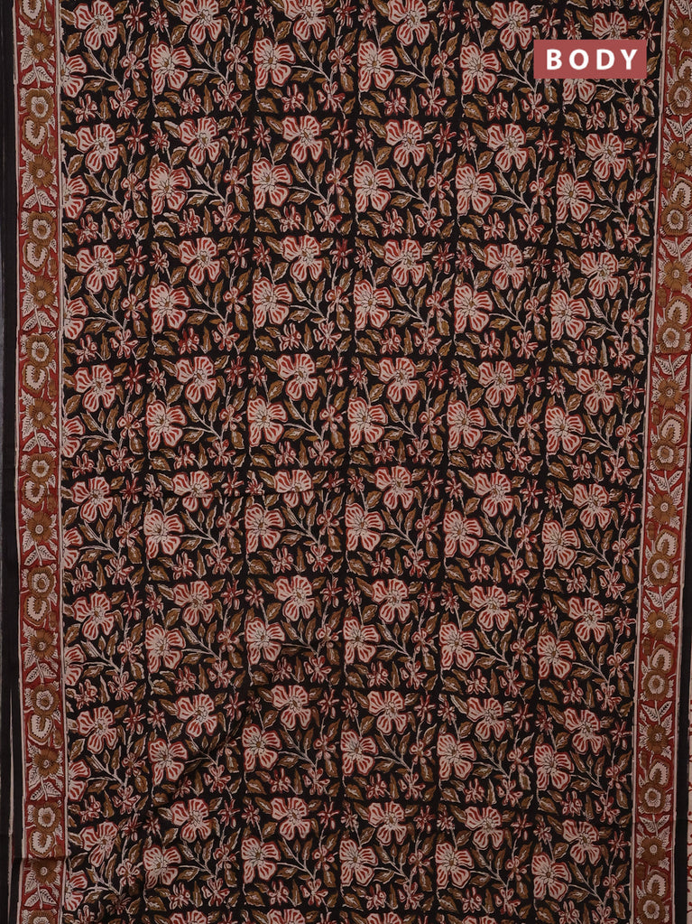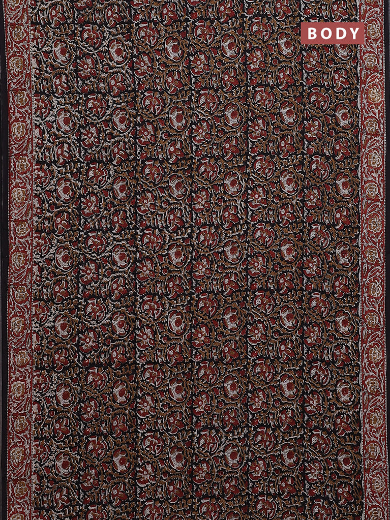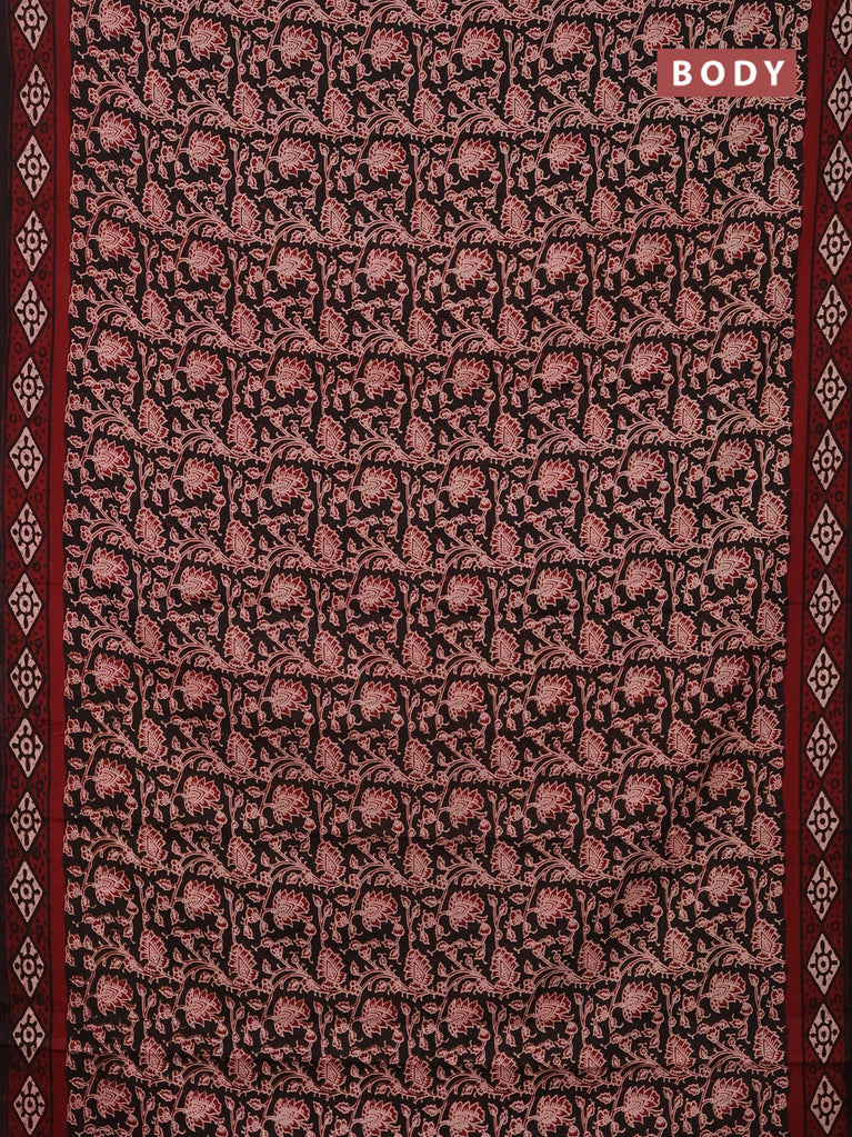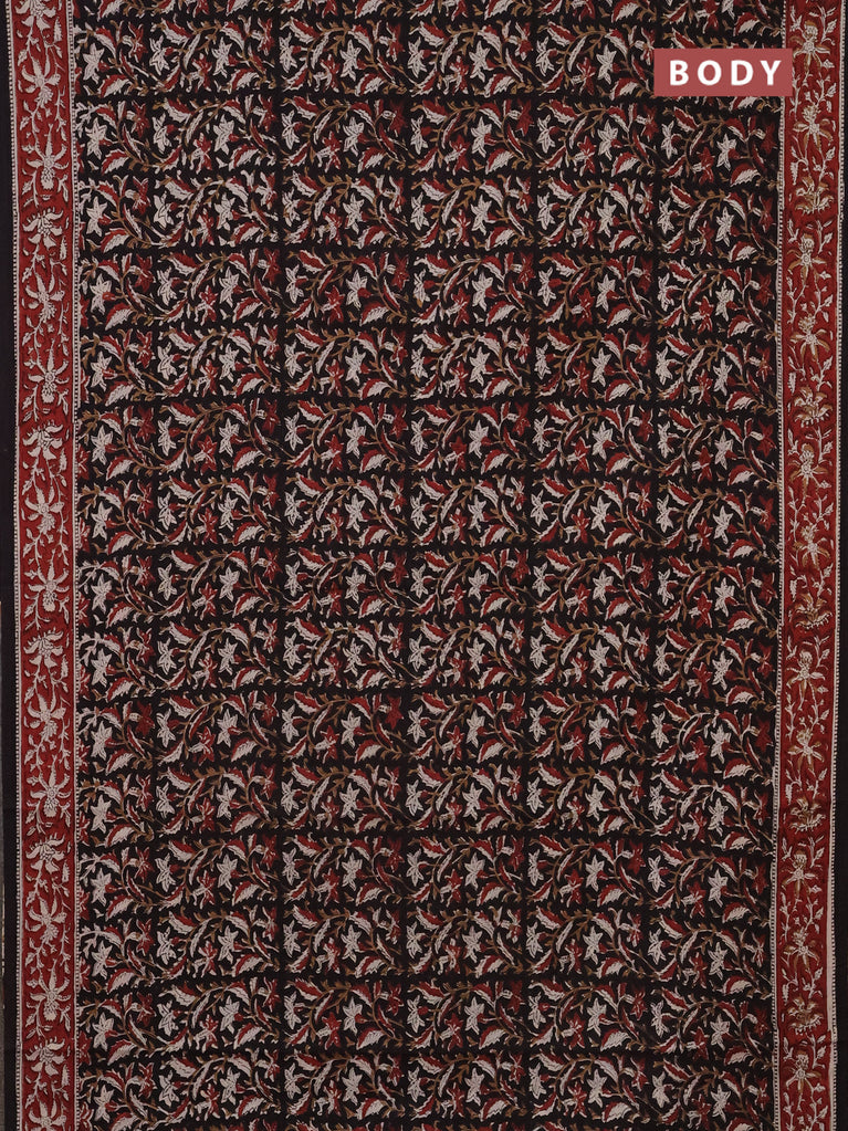 Jaipur cotton saree black and marron with allover kalamkari prints and printed border