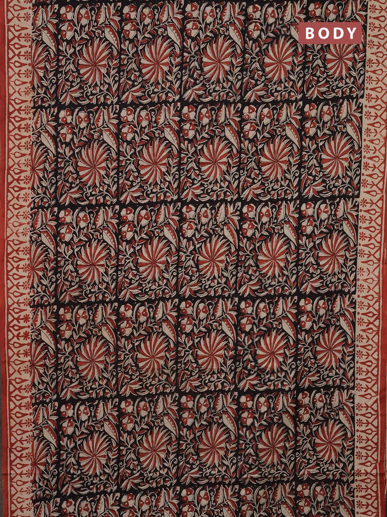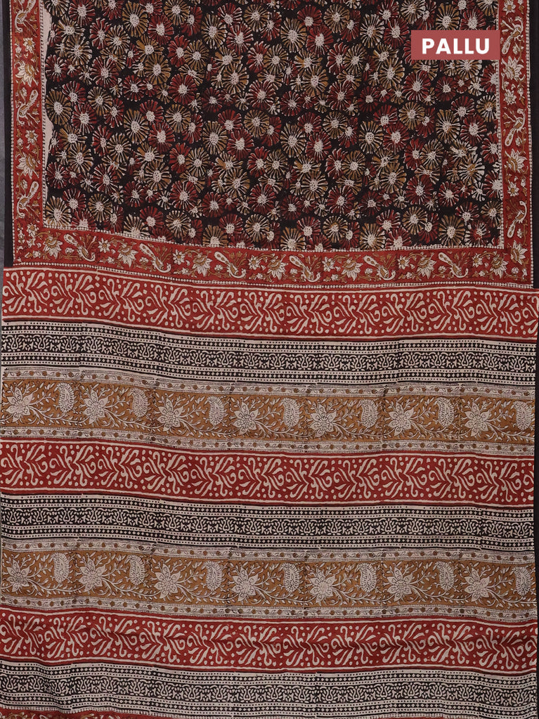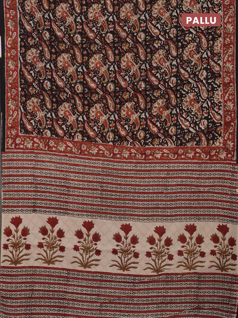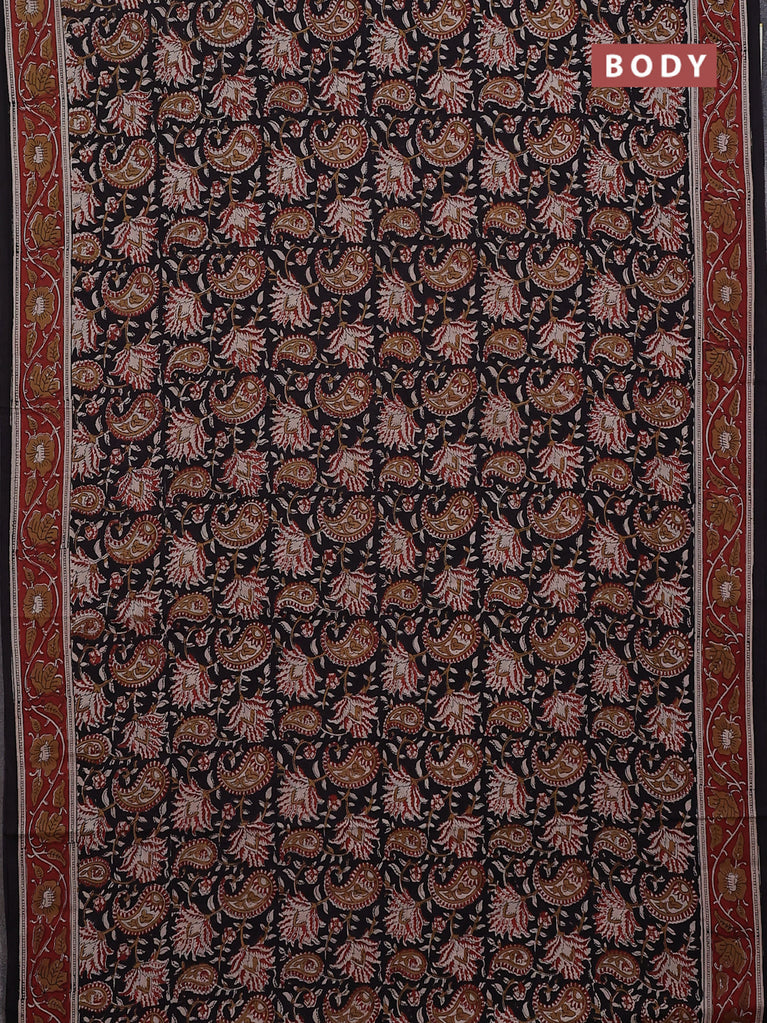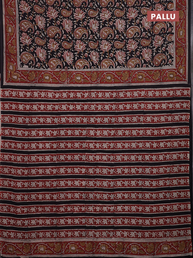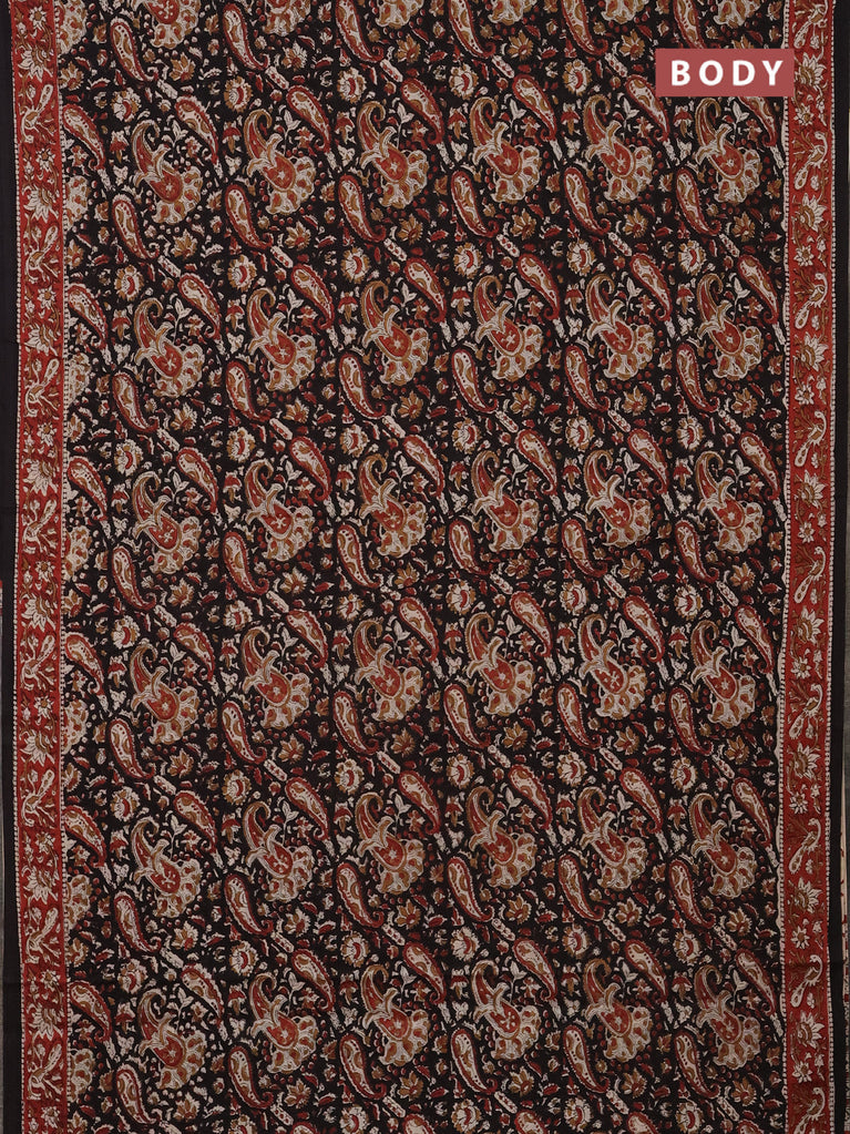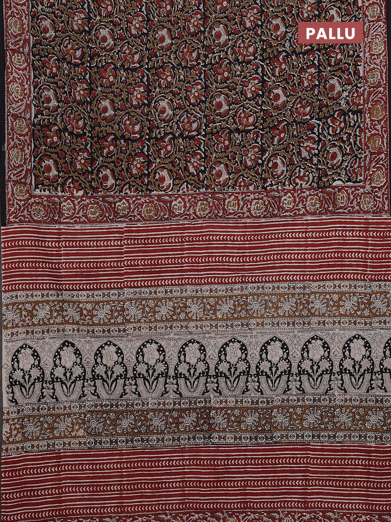 Jaipur cotton saree black and marron with allover kalamkari prints and printed border