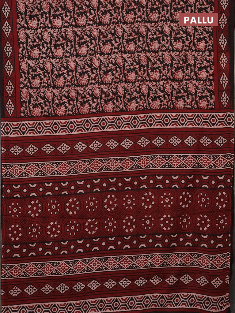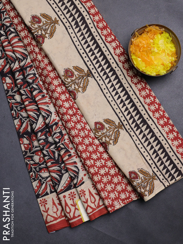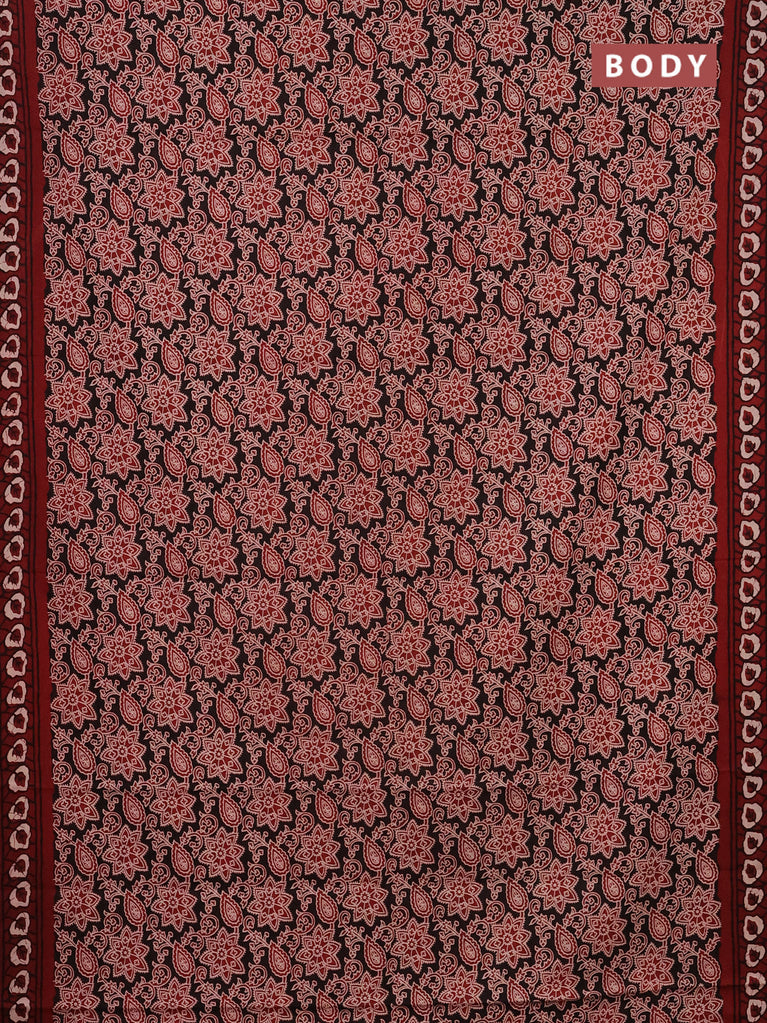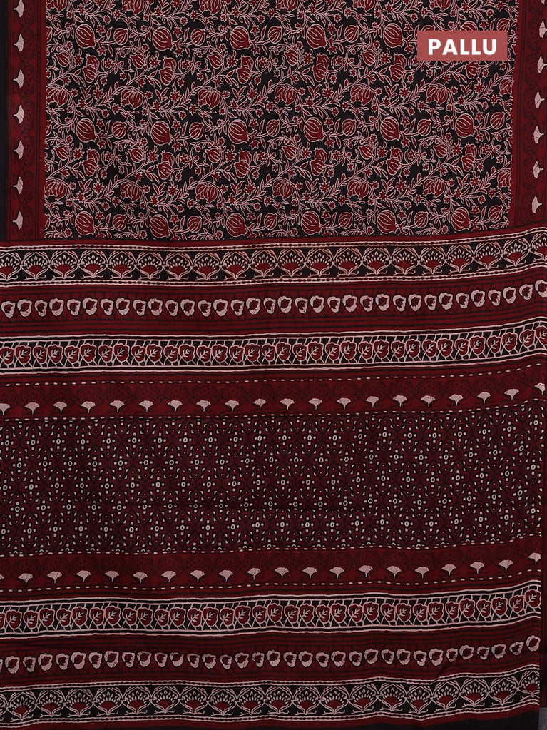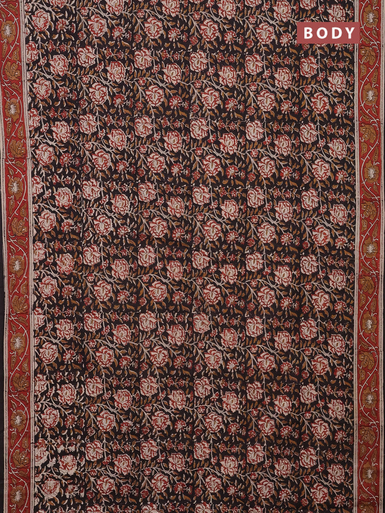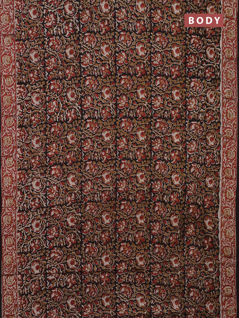 Jaipur cotton saree black and marron with allover kalamkari prints and printed border