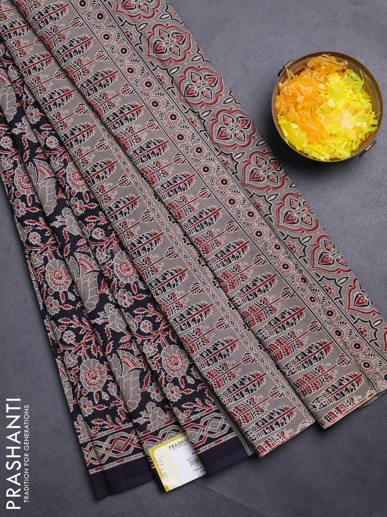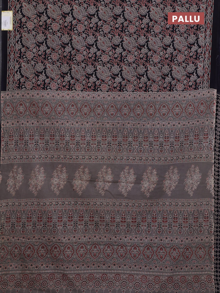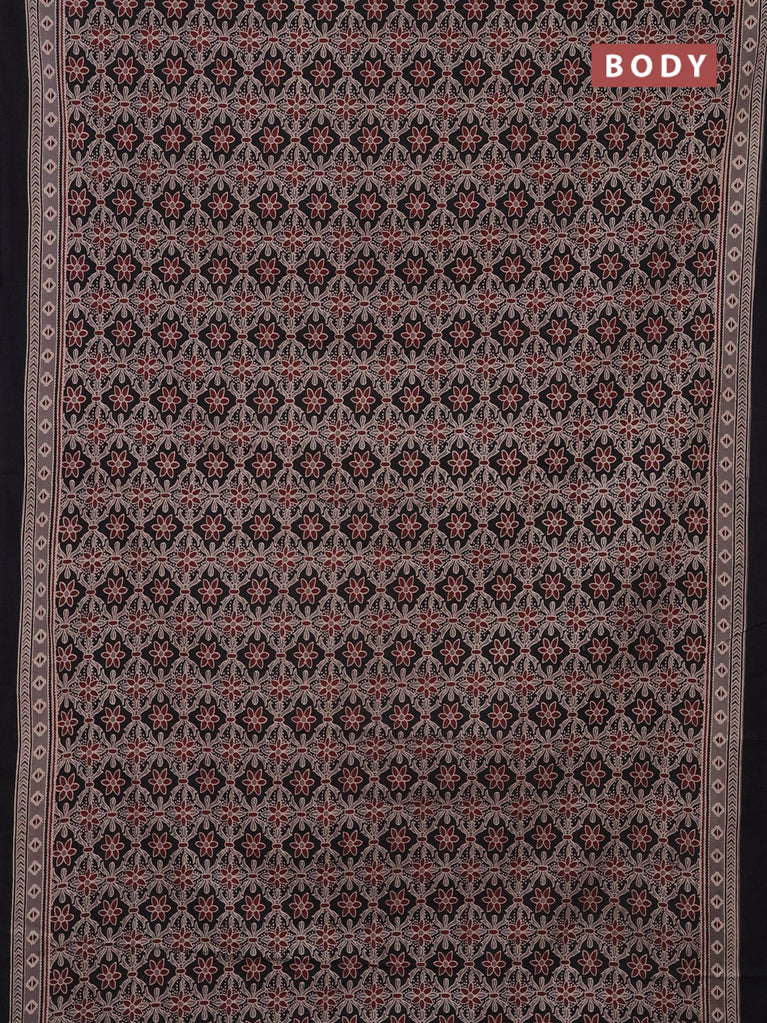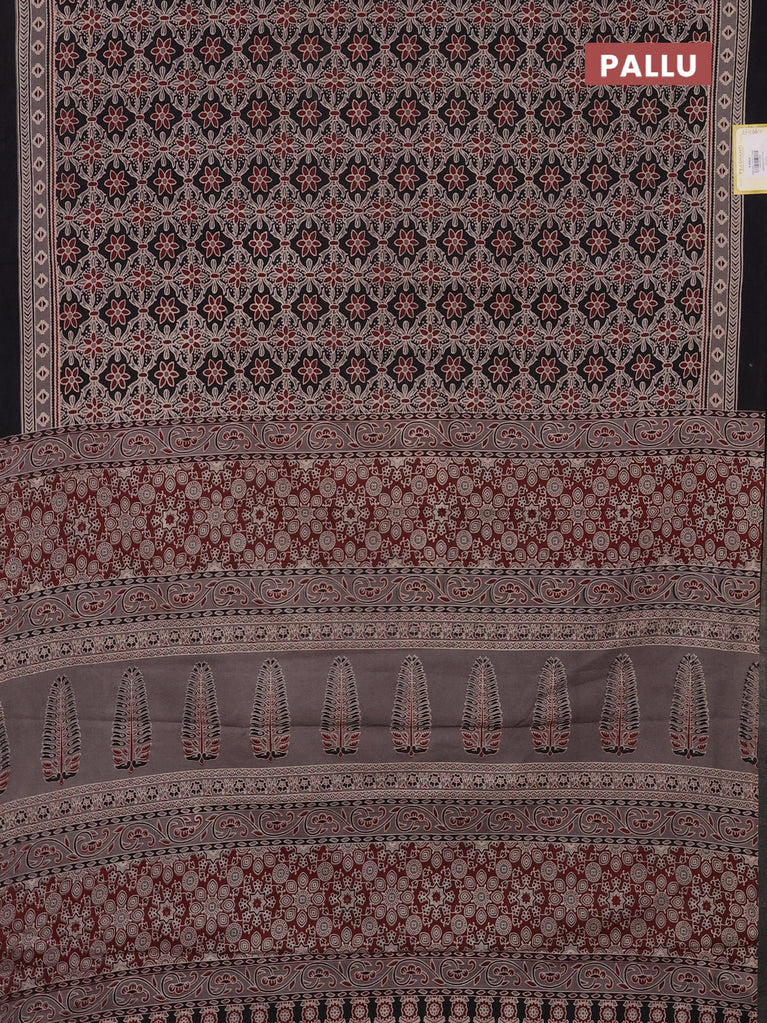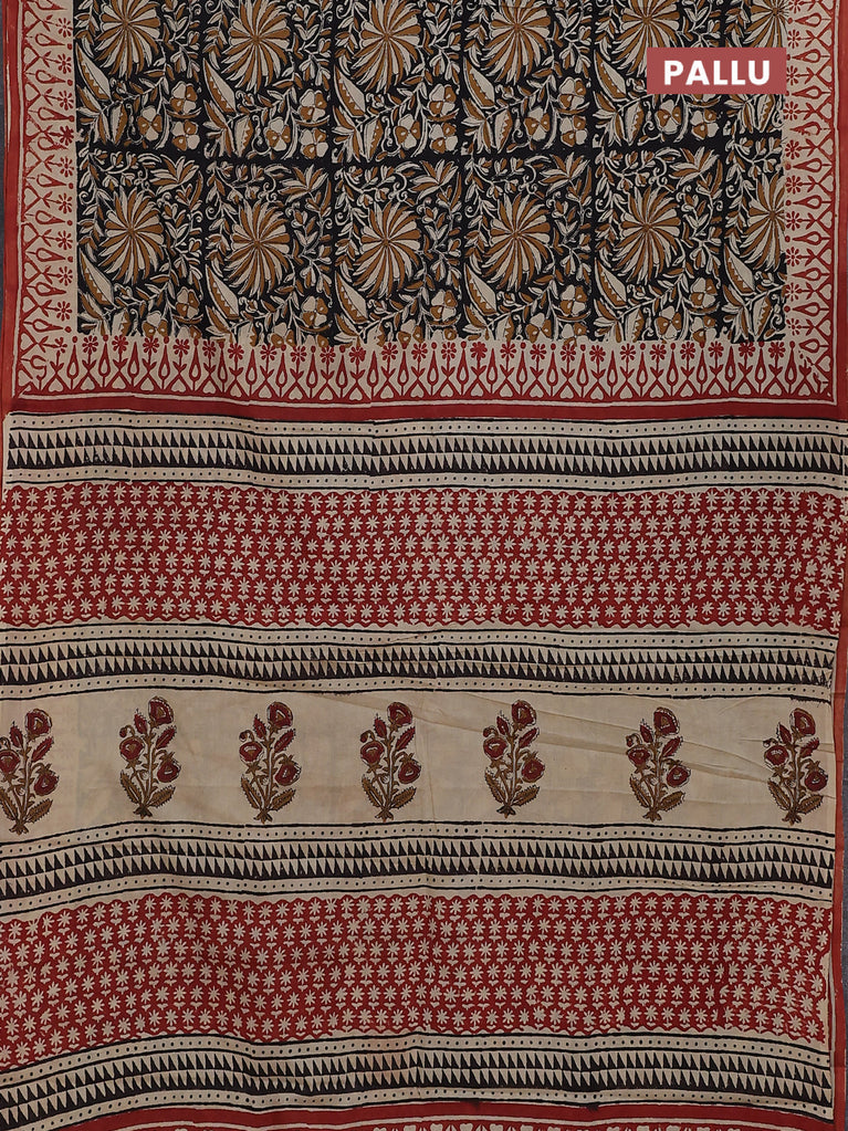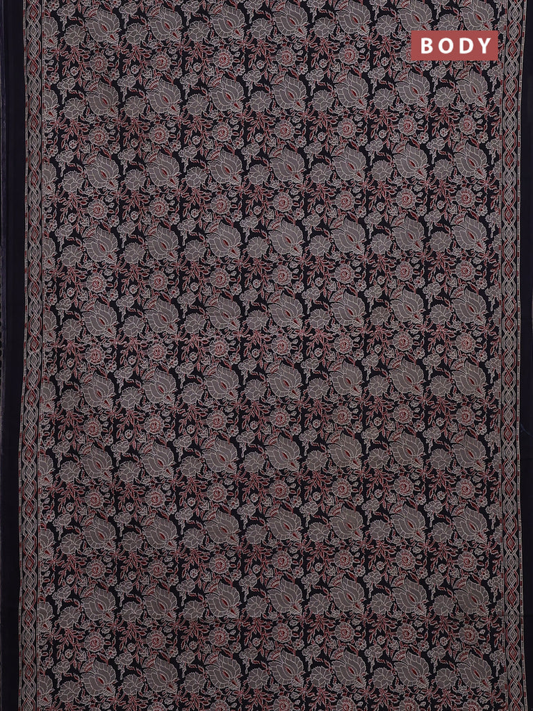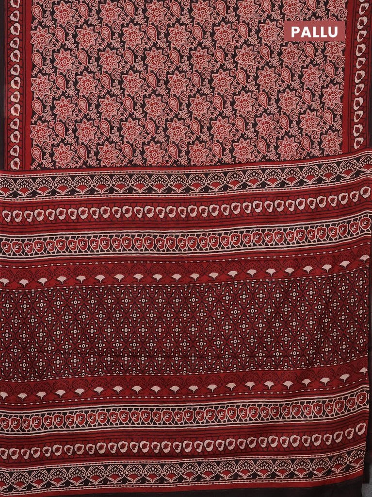 Jaipur cotton saree black and marron with allover kalamkari prints and printed border