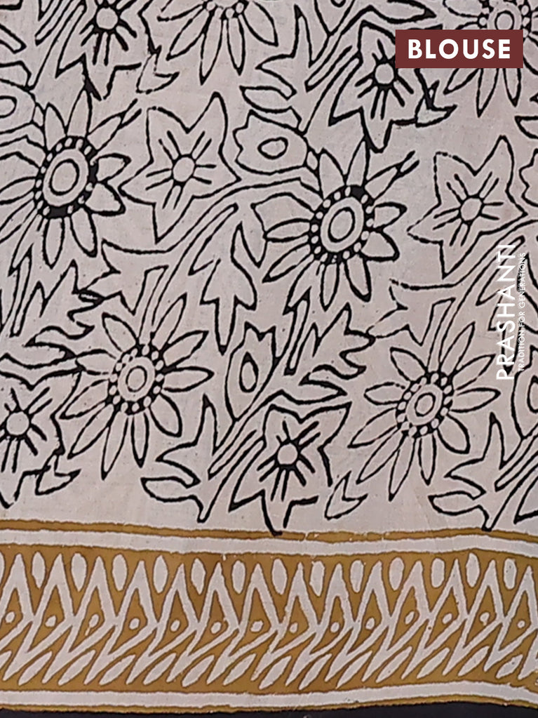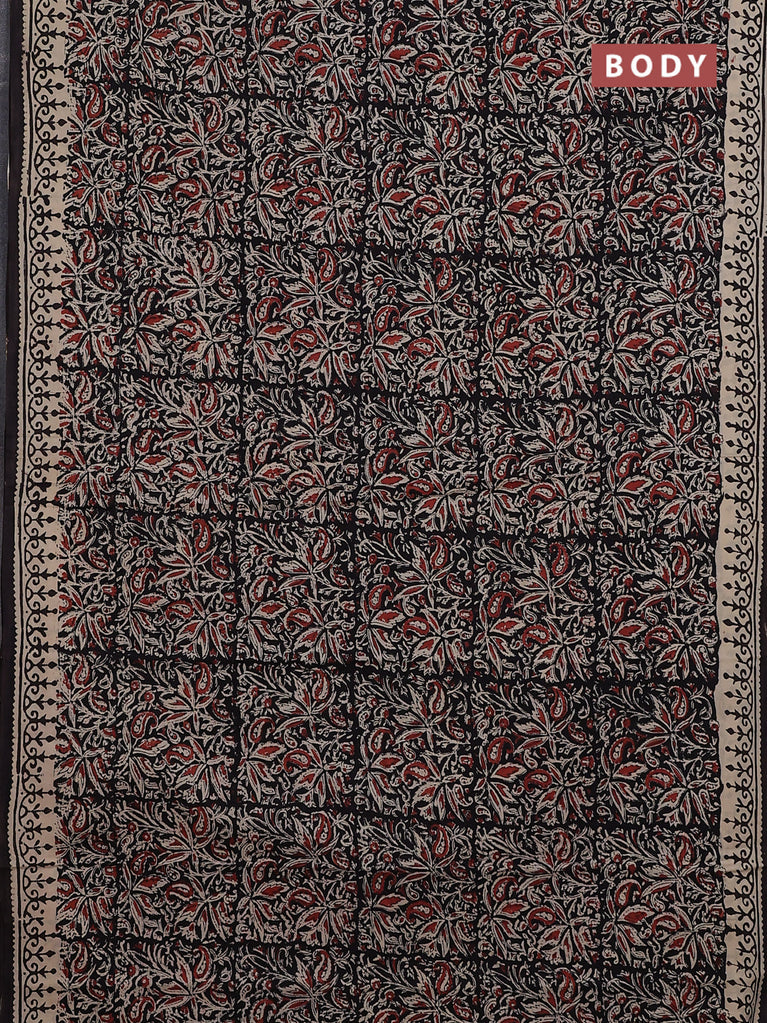 Jaipur cotton saree black and beige with allover kalamkari prints and printed border
