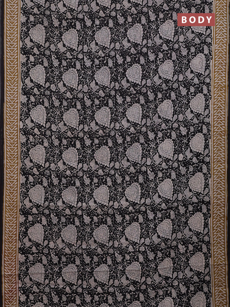 Jaipur cotton saree black with allover kalamkari prints and printed border