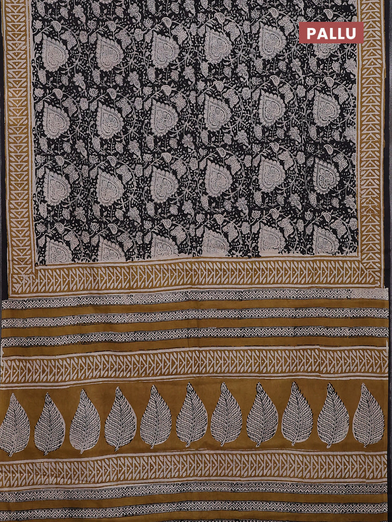 Jaipur cotton saree black and grey with allover prints and printed border