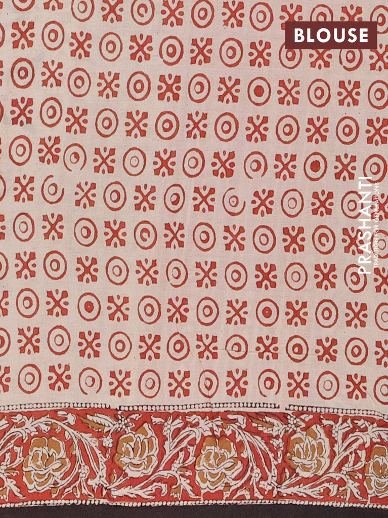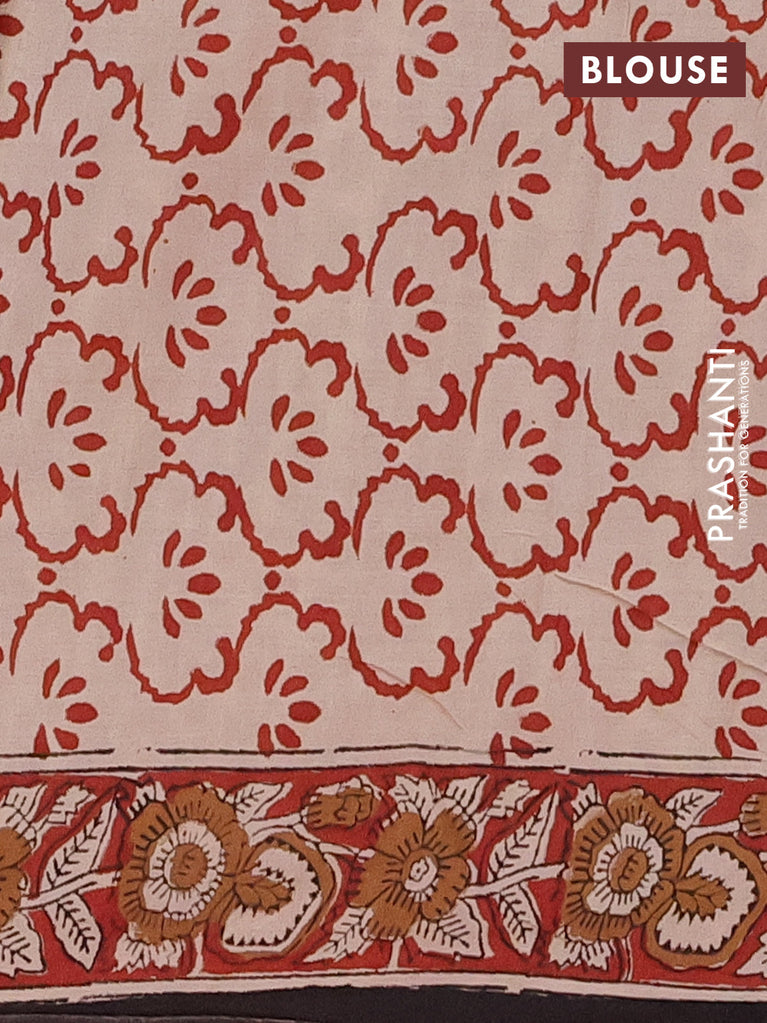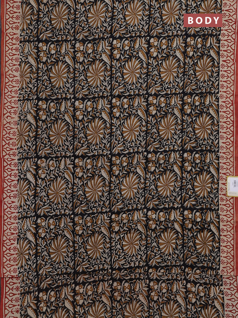 Jaipur cotton saree black and beige rust shade with allover kalamkari prints and printed border