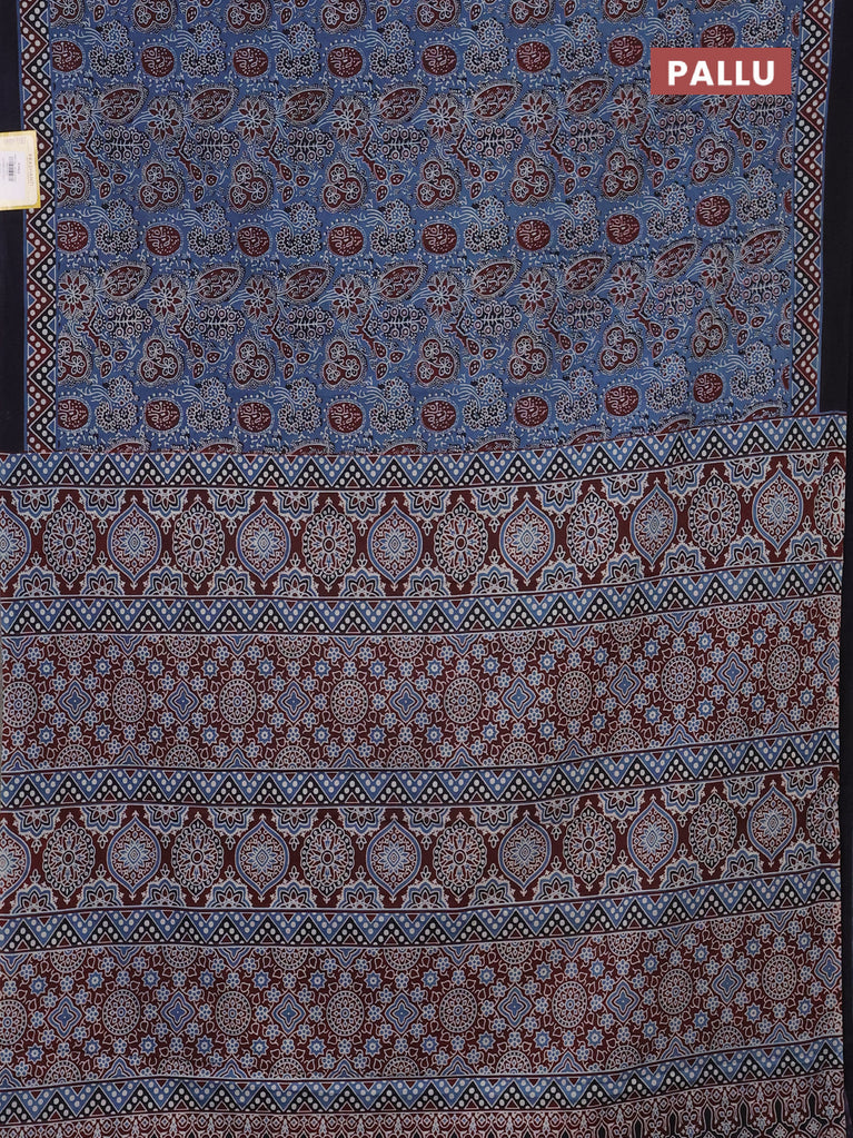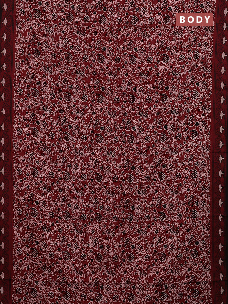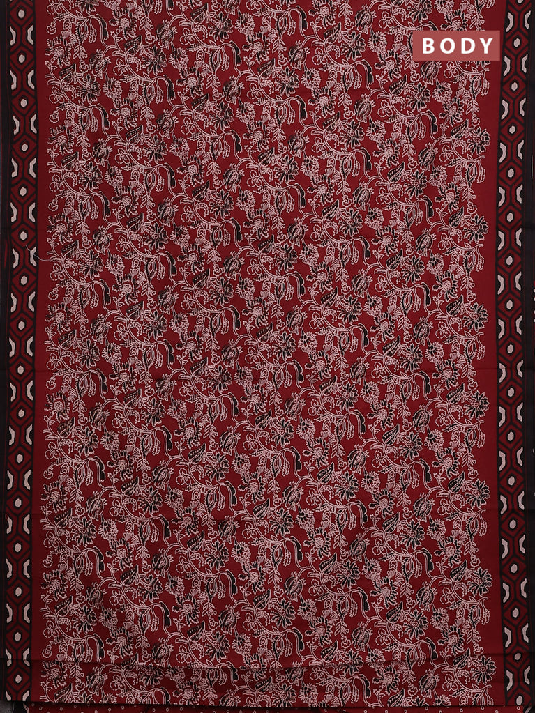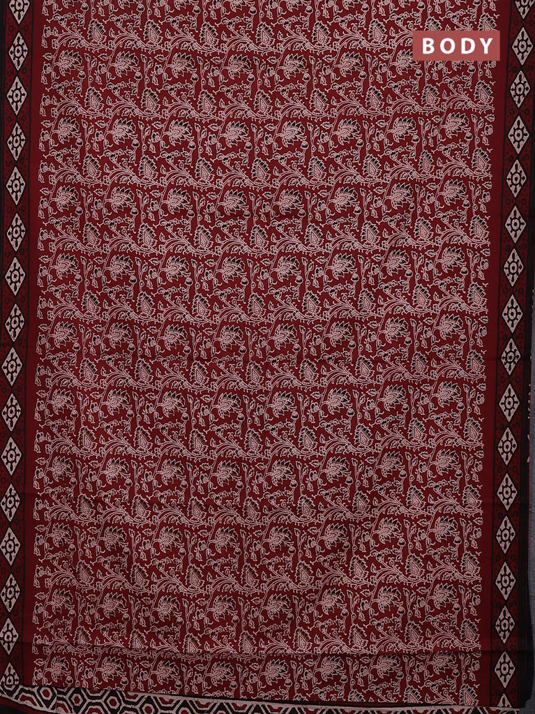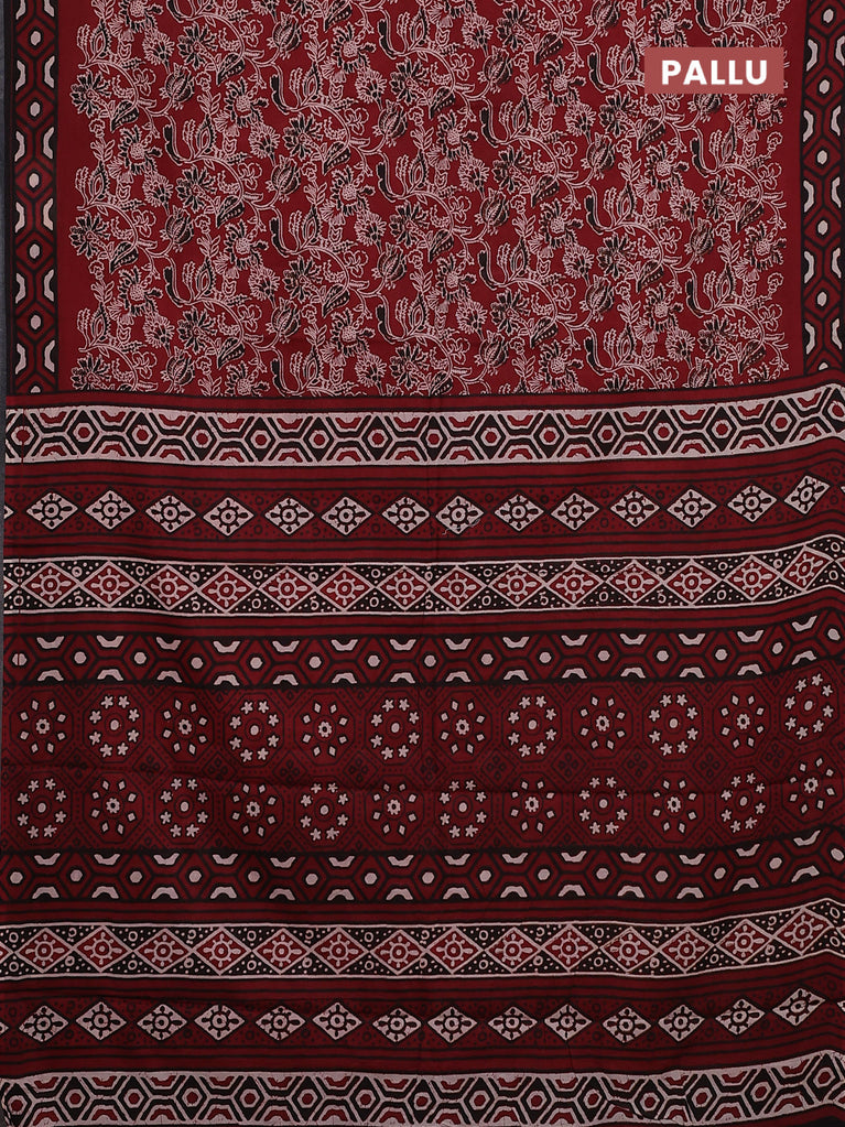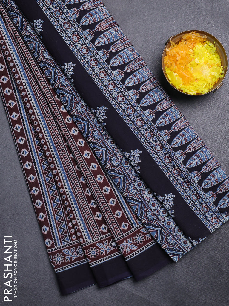 Jaipur cotton saree marron and black with allover ajrakh prints and printed border