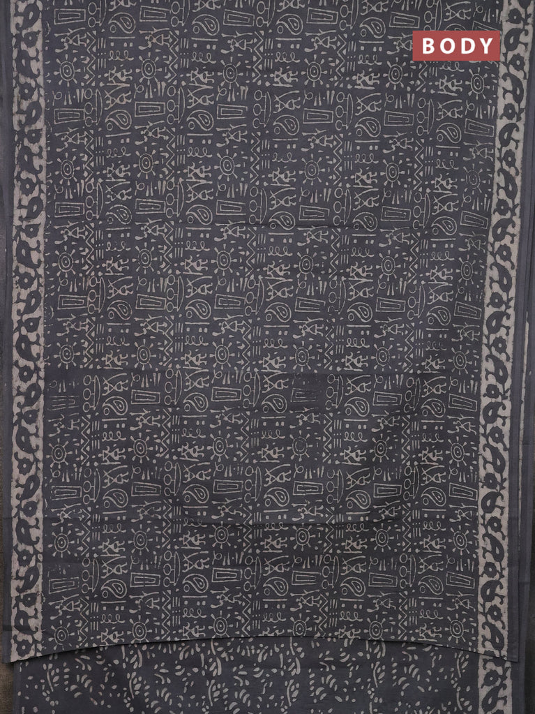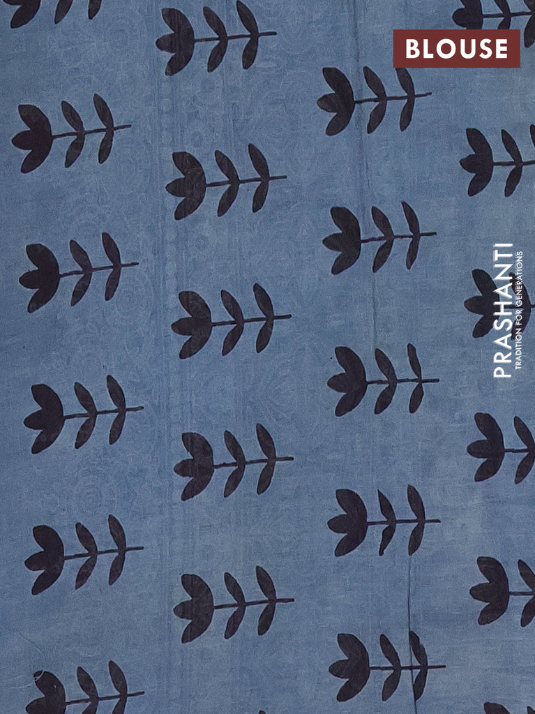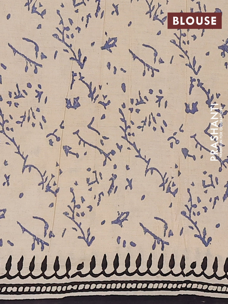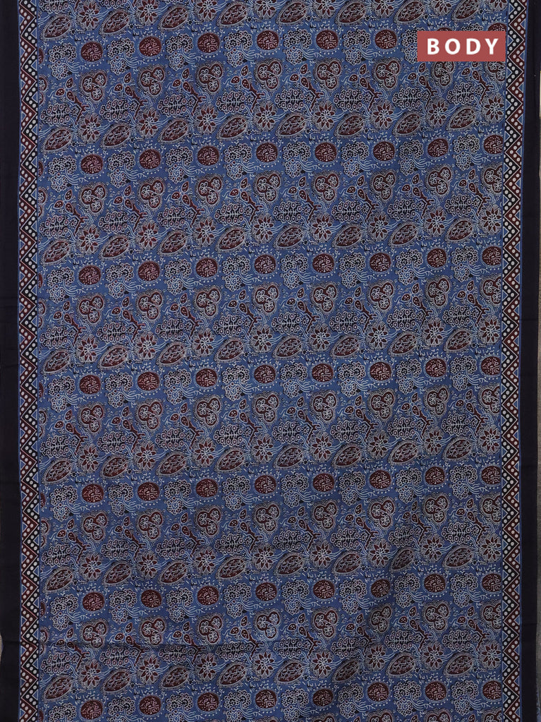 Jaipur cotton saree indigo blue and black with allover prints and printed border