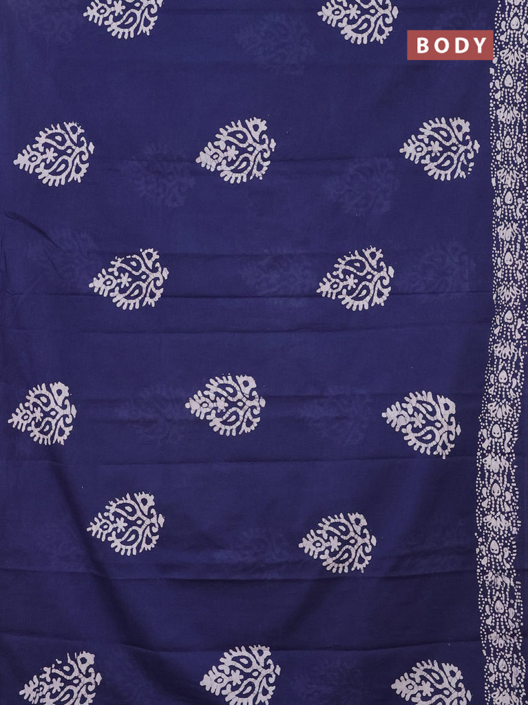 Jaipur cotton saree indigo blue and white with batik prints and printed border