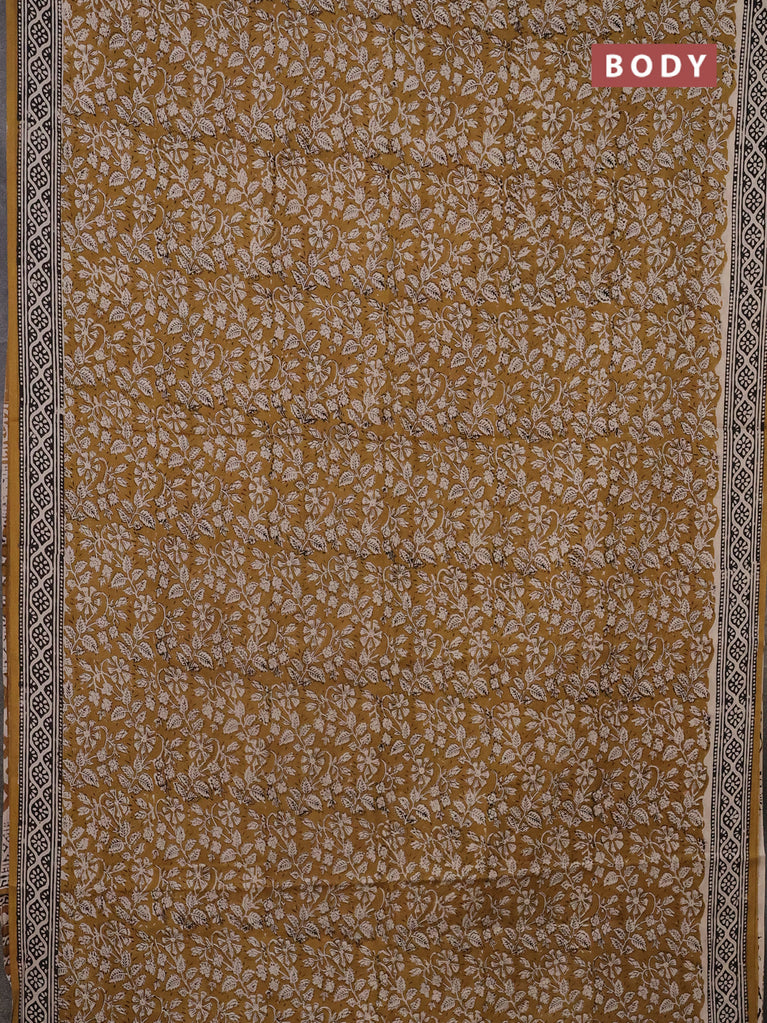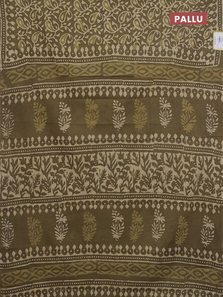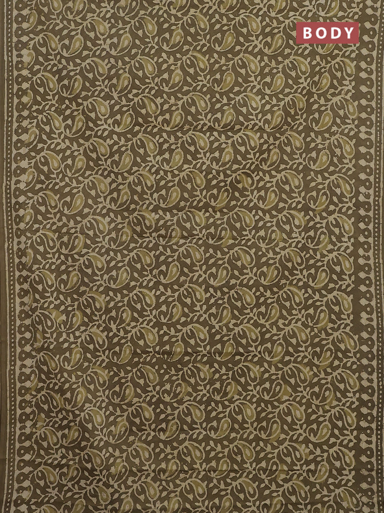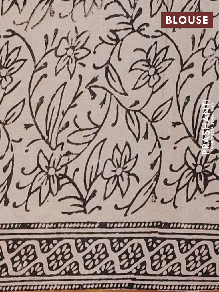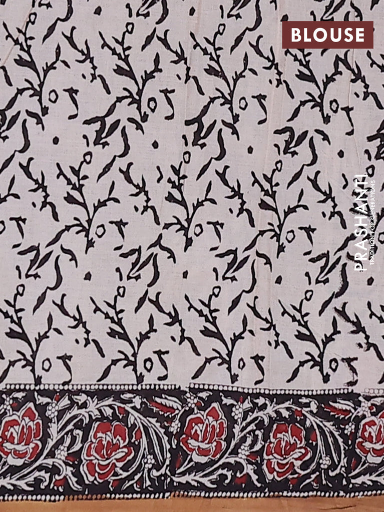 Jaipur cotton saree khaki shade and beige black with allover kalamkari prints and printed border