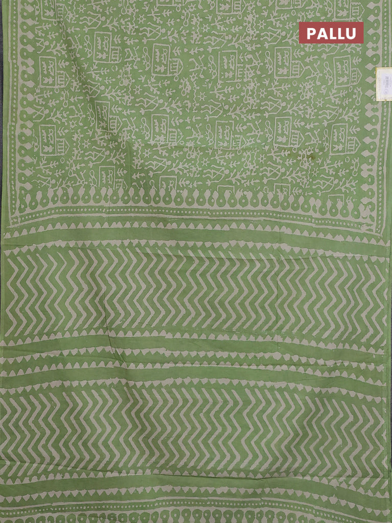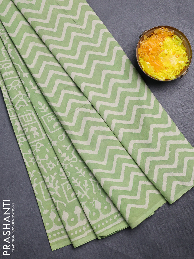 Jaipur cotton saree mahendi green with alovver dabu prints and printed border