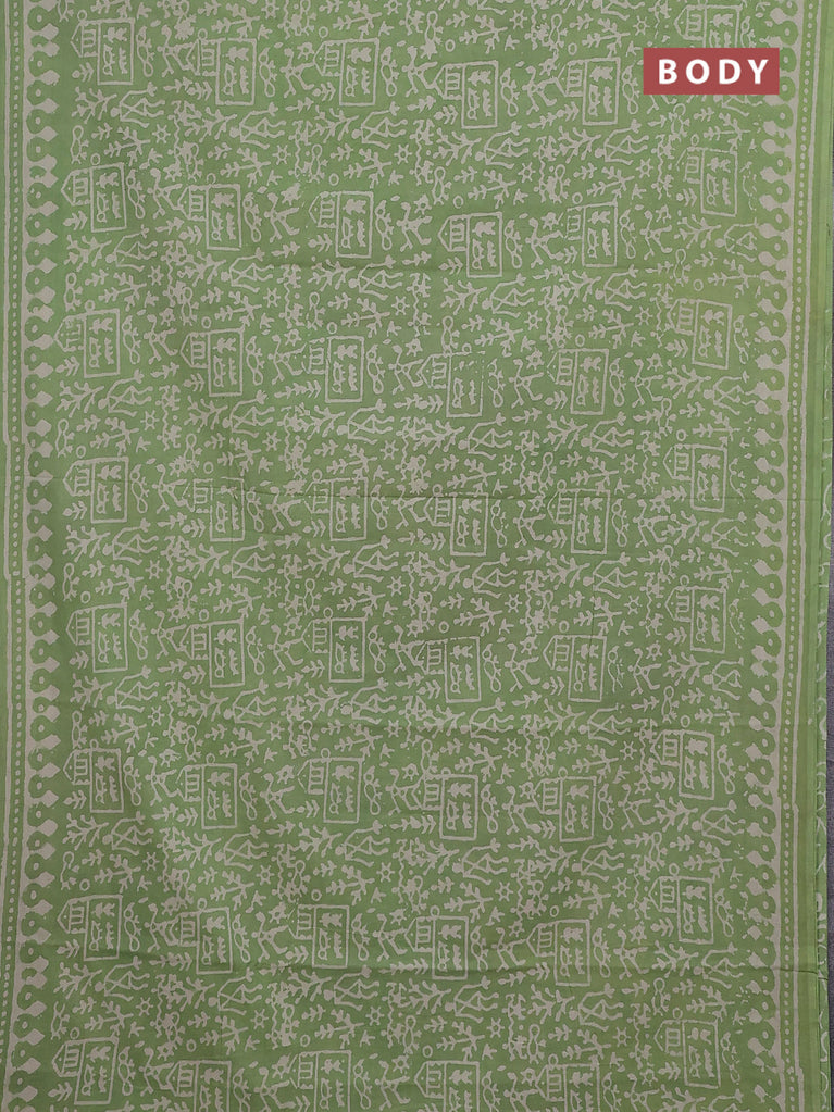 Jaipur cotton saree green and beige with allover warli prints and printed border