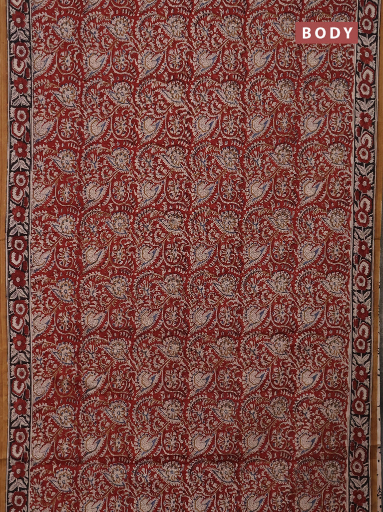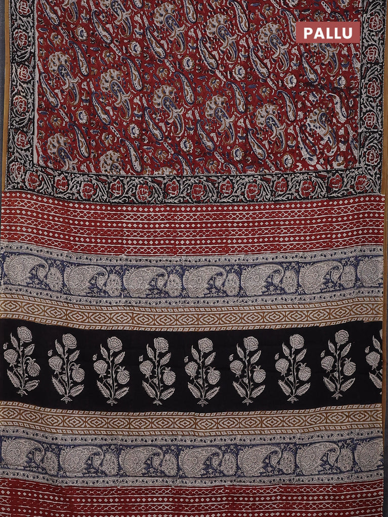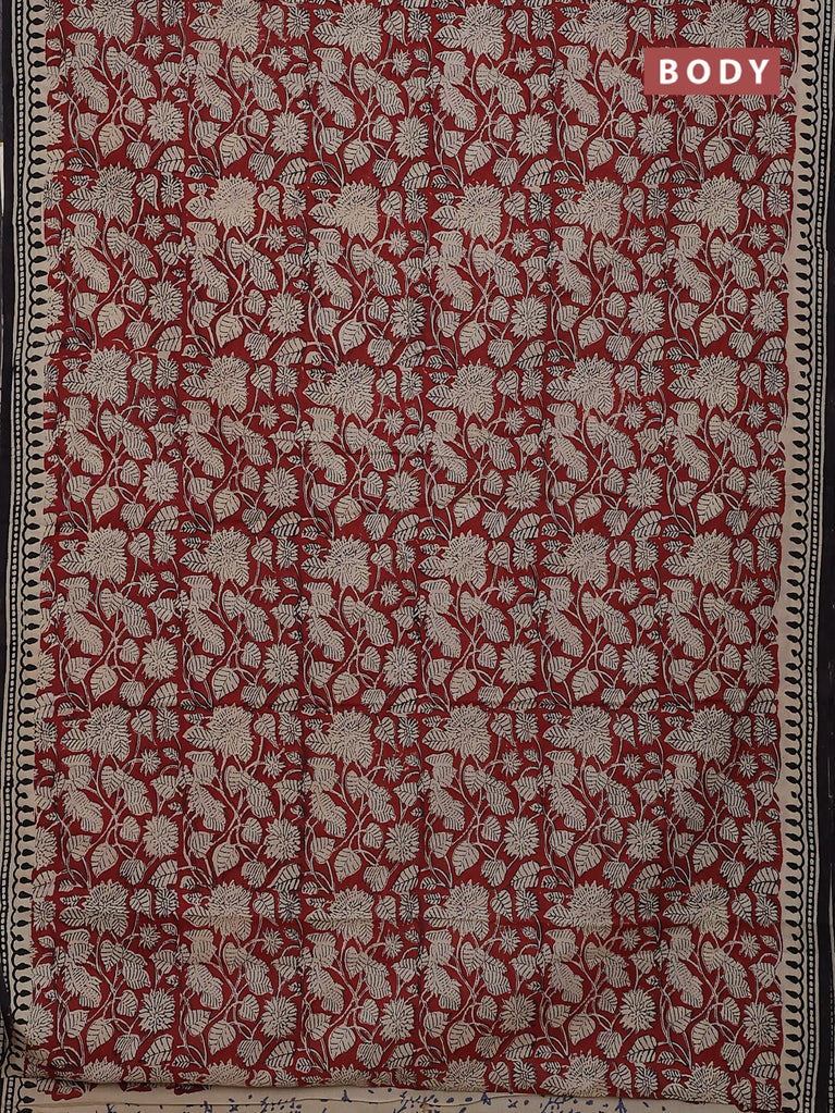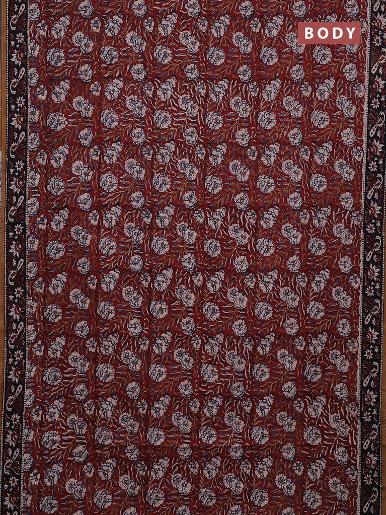 Jaipur cotton saree maroon and black with allover kalamkari prints and printed border