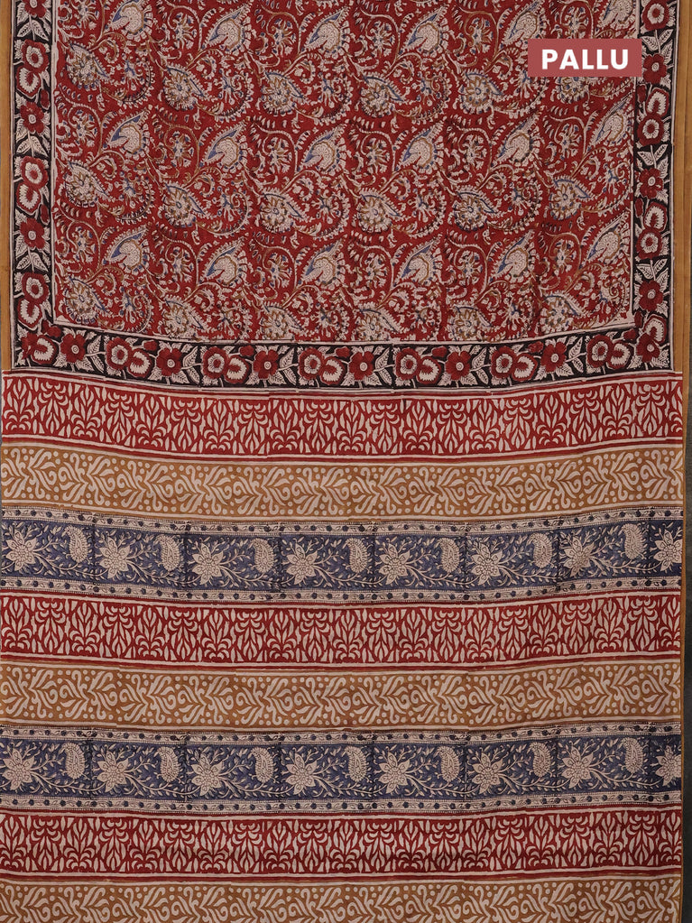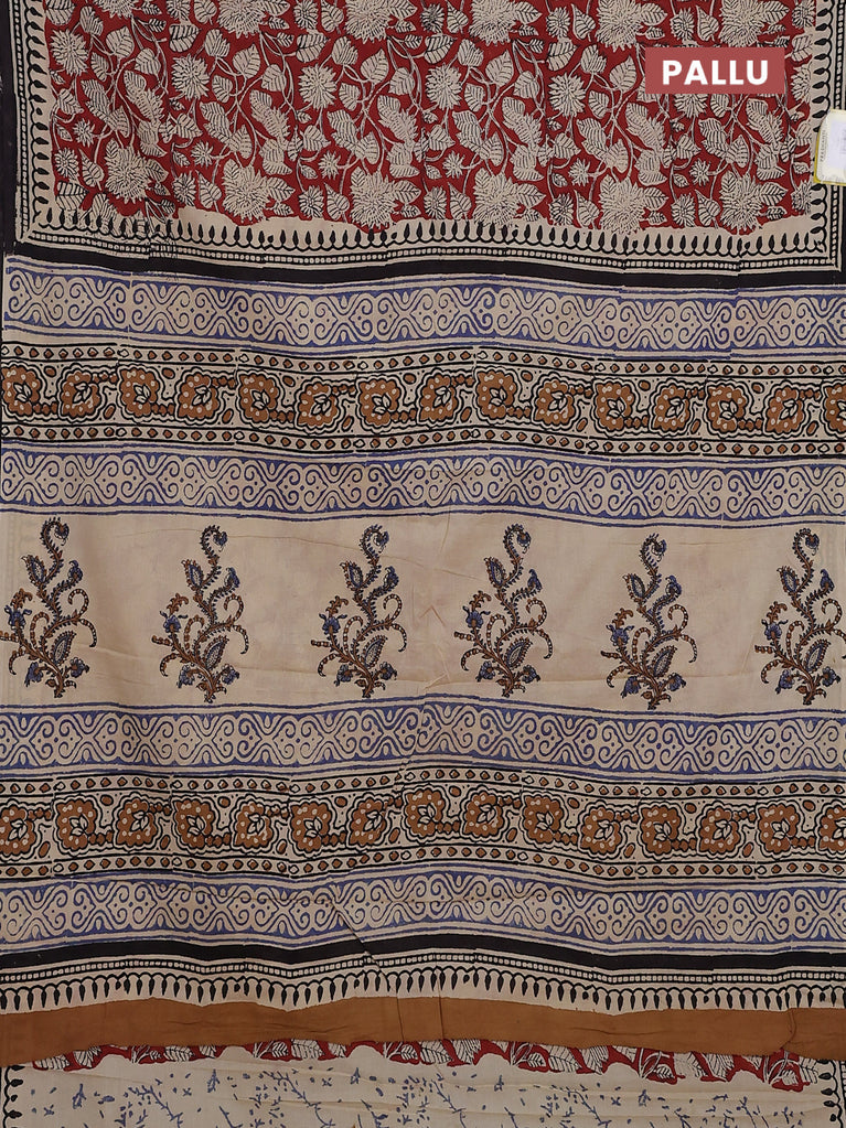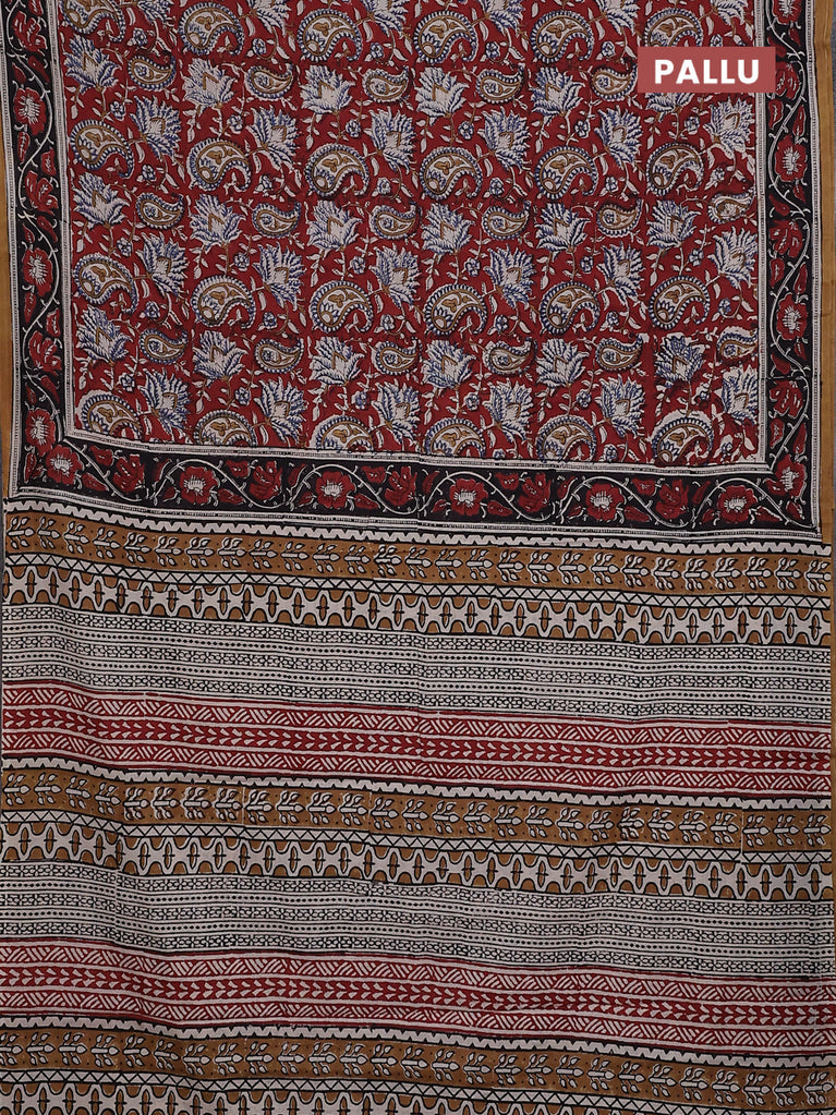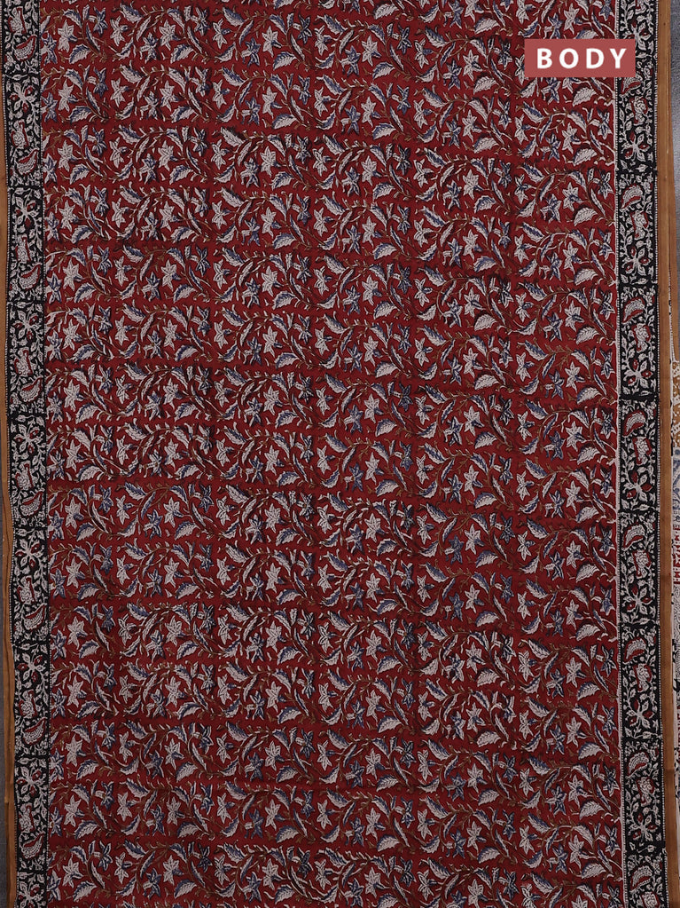 Jaipur cotton saree maroon and sandal with allover kalamkari prints and printed border