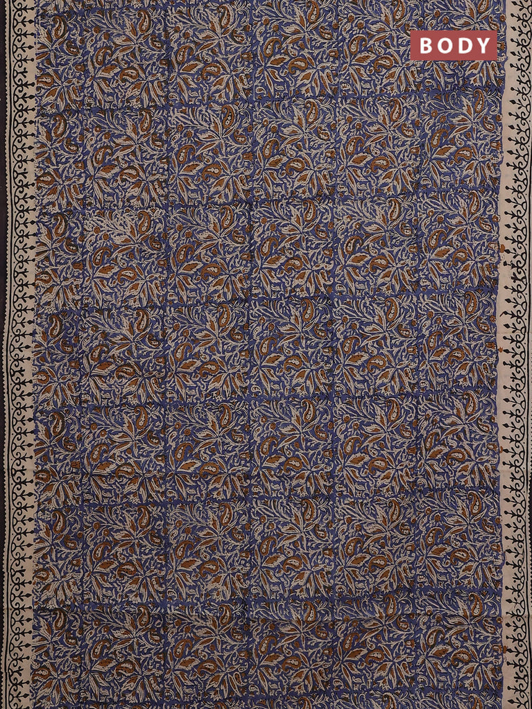 Jaipur cotton saree blue and beige with allover kalamkari prints and printed border
