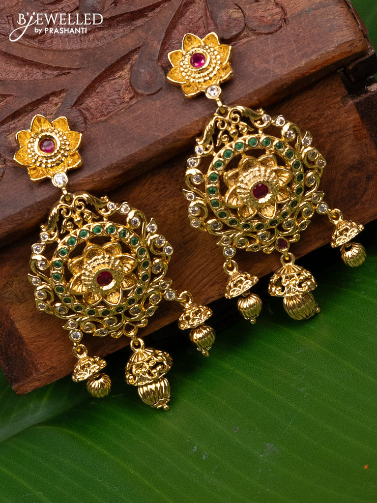 Antique earing lakshmi design with kemp & cz stones and pearl jhumka hangings