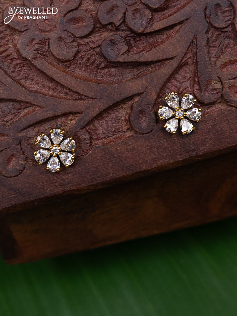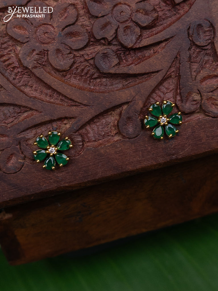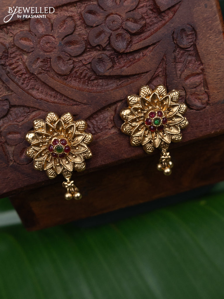Antique earring floral design with kemp & cz stones and golden beads hanging