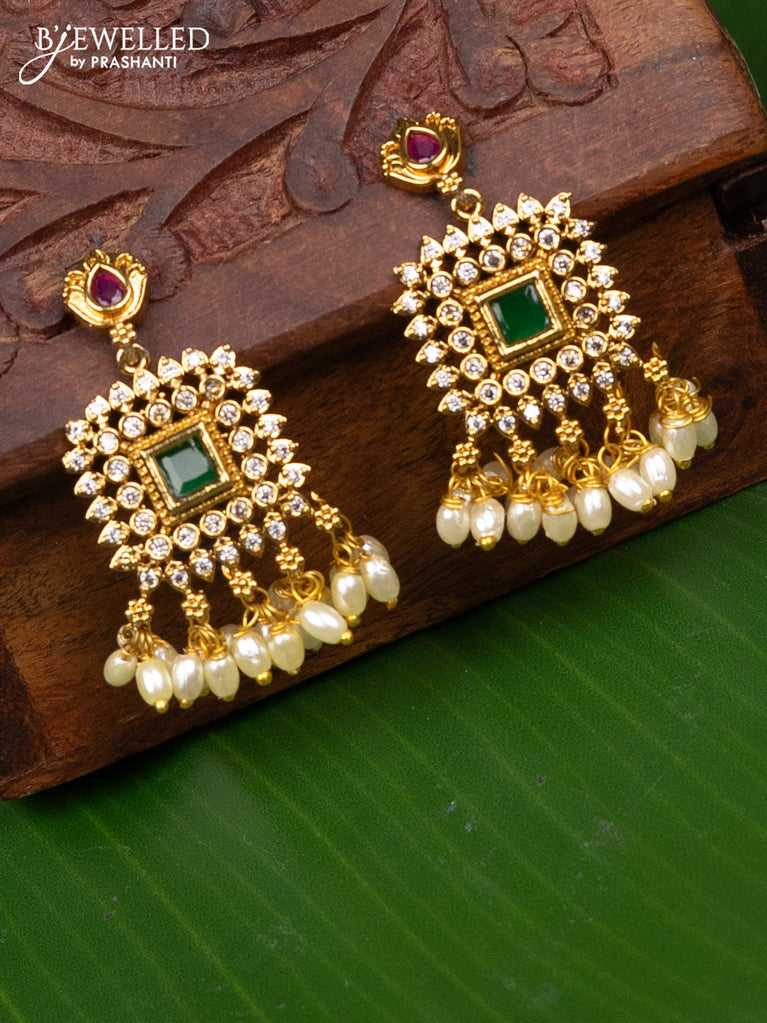 Antique earring with kemp & cz stones and pearl hangings