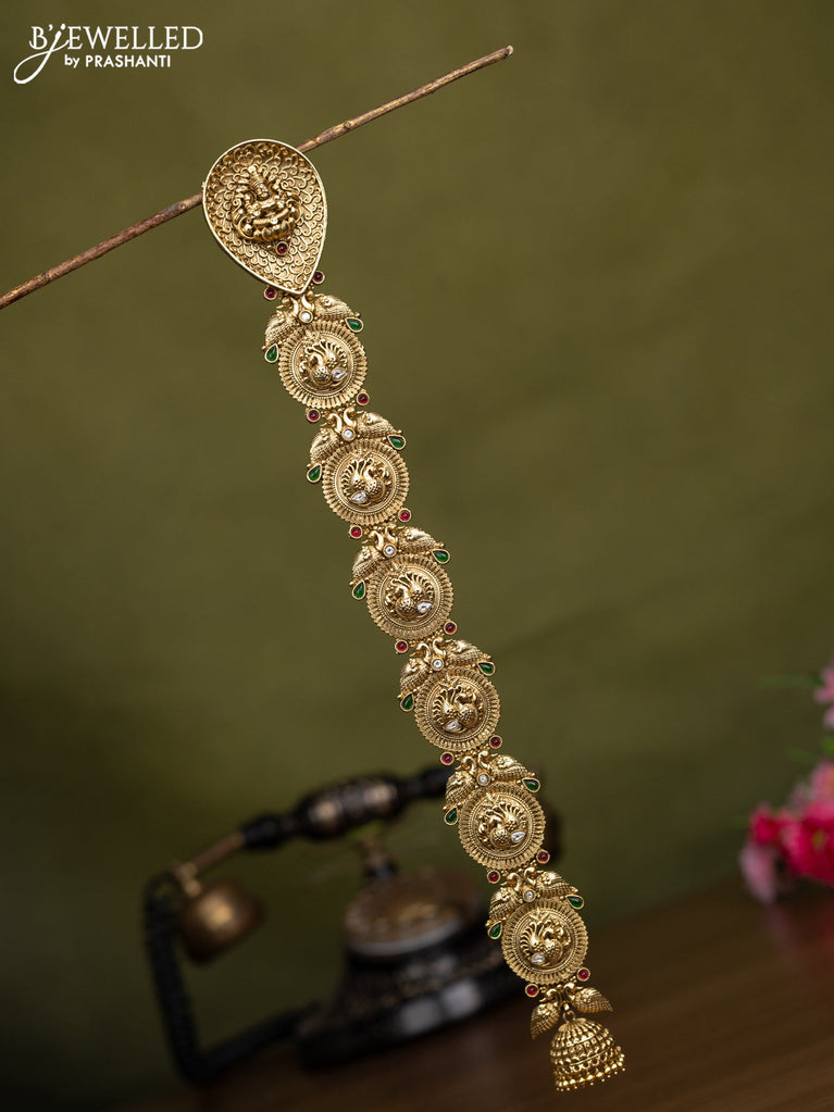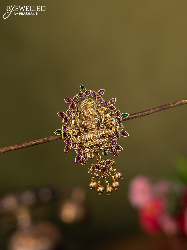 Antique jadabillai lakshmi design with kemp stone and golden beads hangings