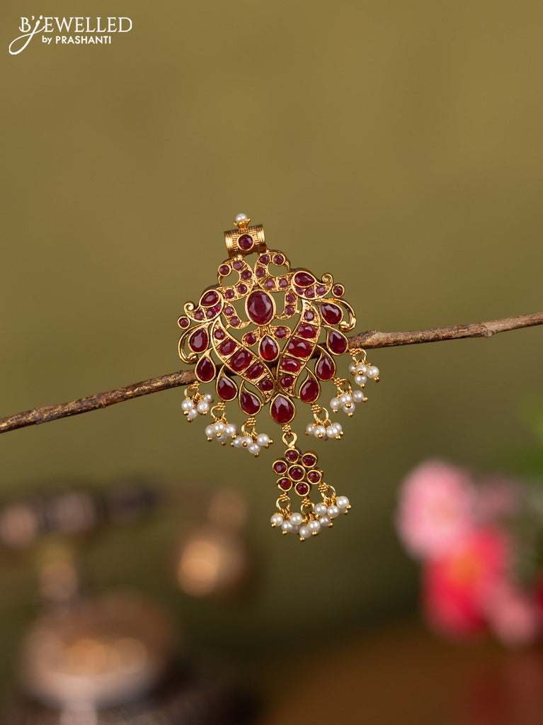 Antique jhumka ganesha design with kemp stones and pearl hanging