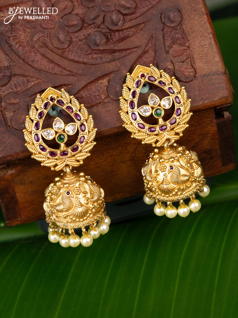 Antique jhumka peacock design with kemp & cz stones pearl hangings