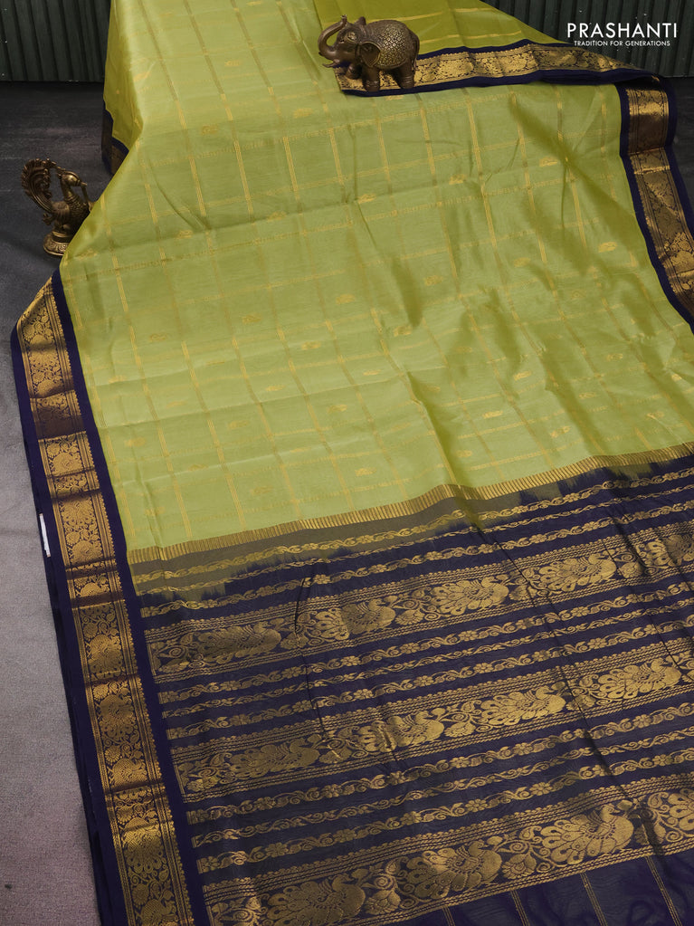 10 yards silk cotton saree light green and navy blue with allover zari checks & buttas and zari woven border