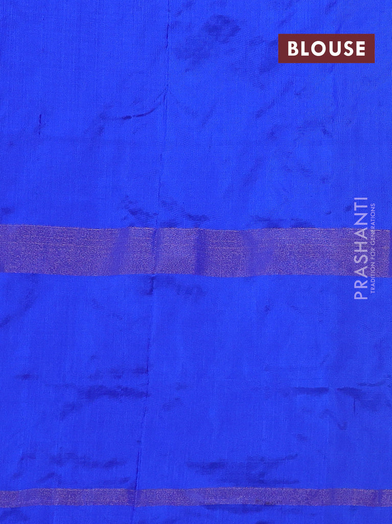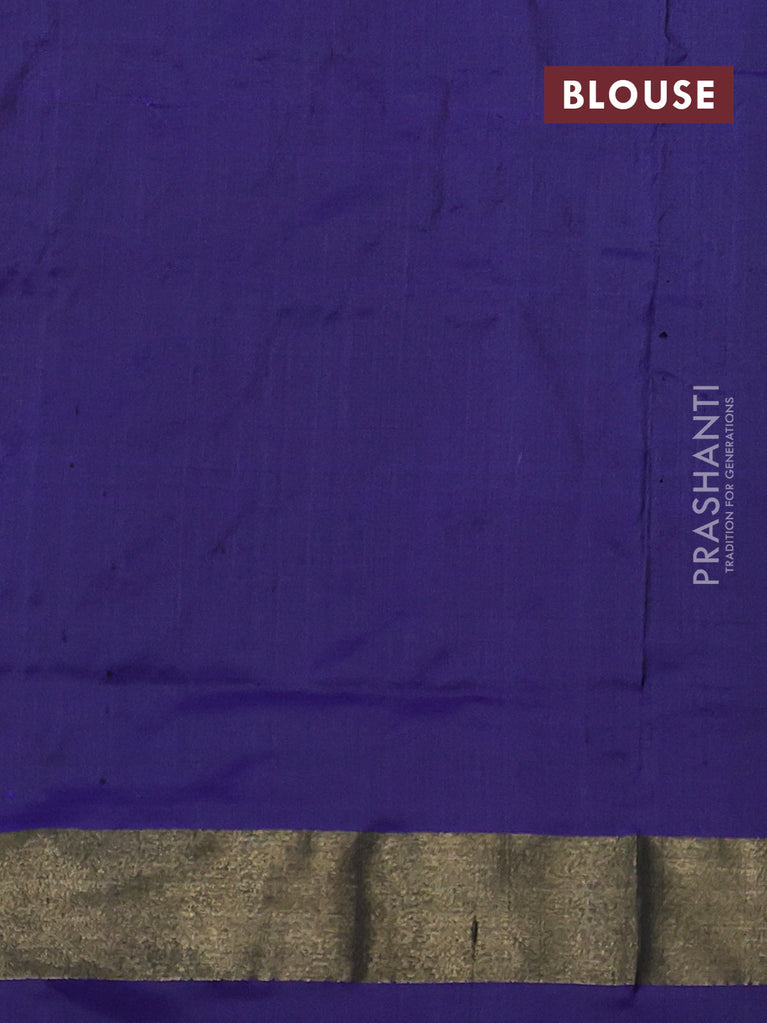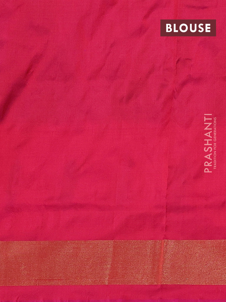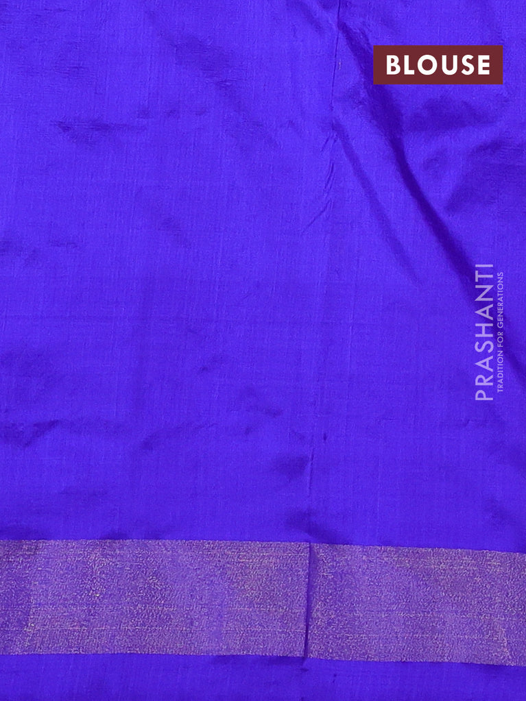 Pochampally silk saree dual shade of blue and magenta pink with allover ikat butta weaves and long ikat woven zari border