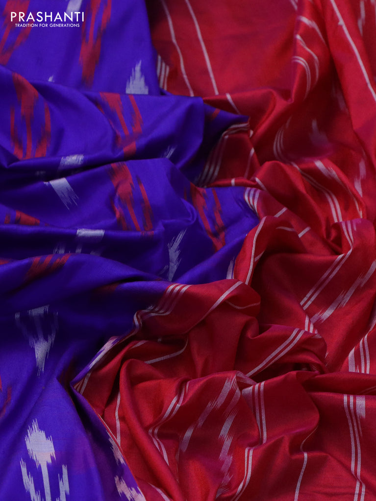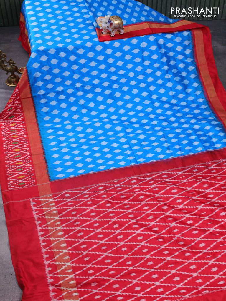 Pochampally silk saree cs blue and red with allover ikat weaves and zari woven border