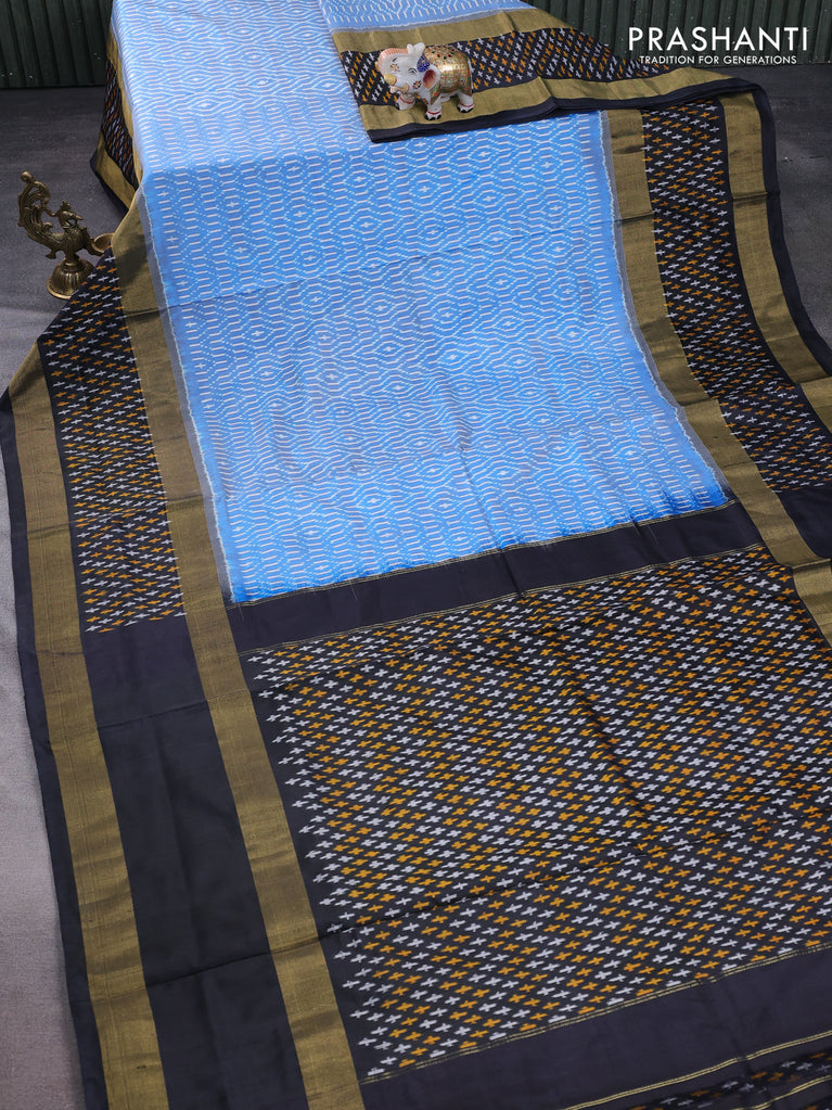 Pochampally silk saree blue and black with allover ikat weaves and long zari woven ikat border