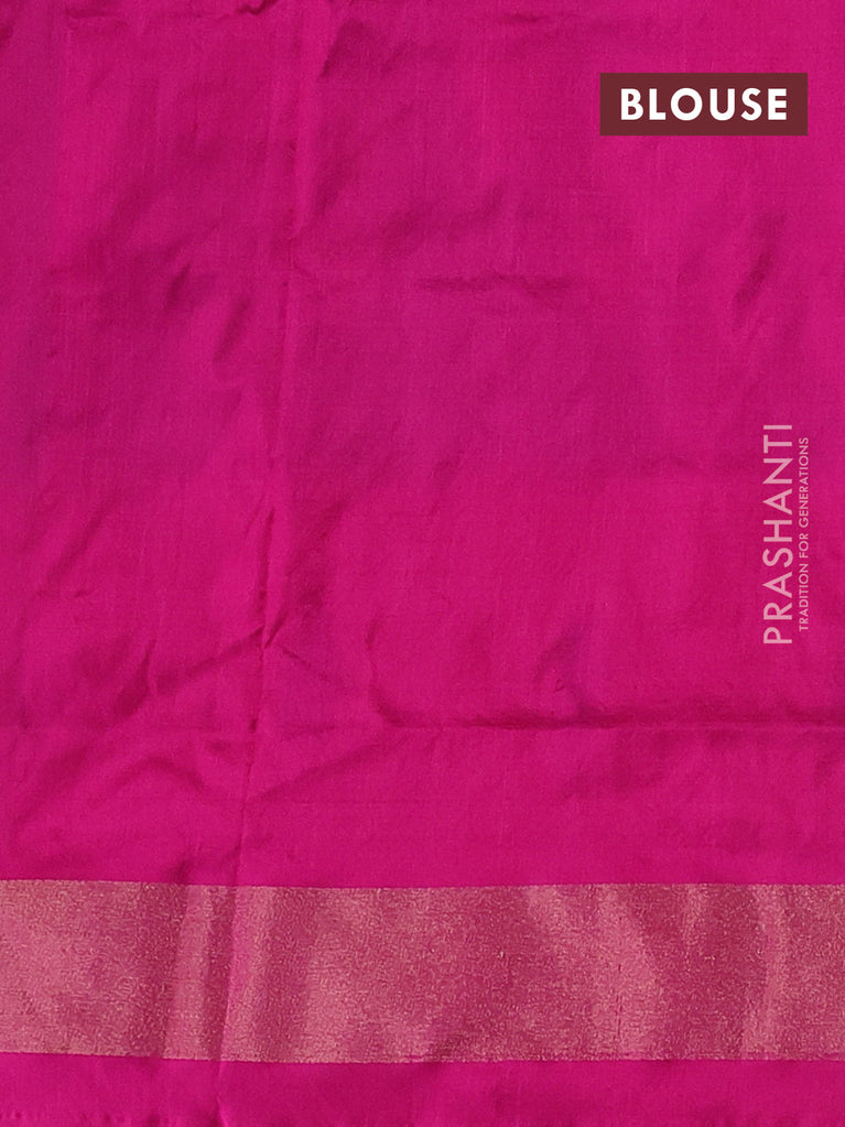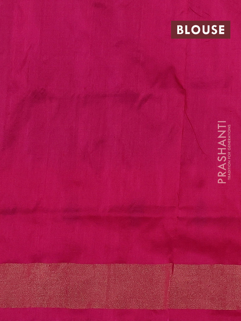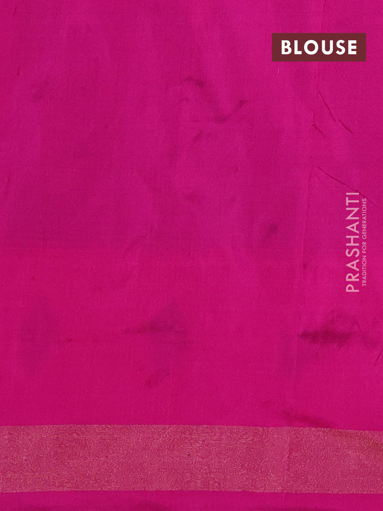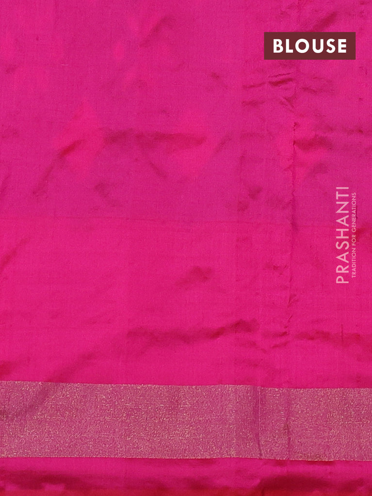 Pochampally silk saree greem and magenta pink with allover ikat butta weaves and long ikat woven zari border