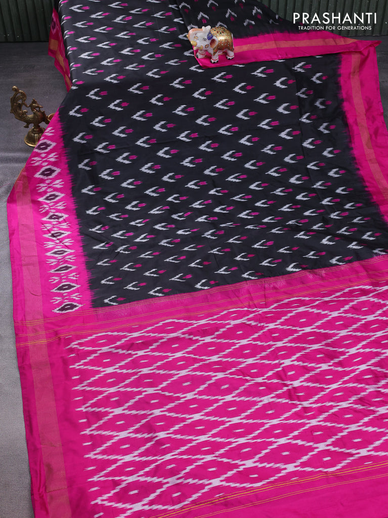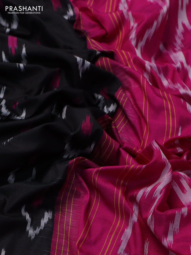 Pochampally silk saree black and pink with allover ikat butta weaves and long ikat woven zari border