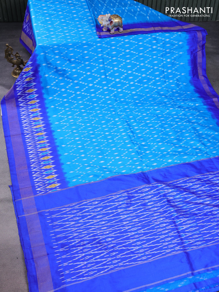 Pochampally silk saree cs blue and blue with allover ikat weaves and long ikat woven zari border